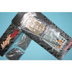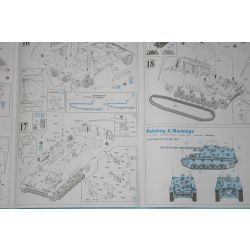 スライド金型で形状を確実に再現したシャシーを採用してリアリティあふれる仕上がりを実現。もちろん、88ミリ砲を装備するオープントップの戦闘室はメカニカルな仕上がりが楽しみです。主役の88ミリ砲は55mmにもなるアルミ製砲身パーツがセットされているほか、砲身基部の閉鎖機なども複数パーツで再現され存在感も十分。砲弾ラックも開閉を選択して組み立て可能です。また、指揮車タイプの特徴ある無線機は専用部品でアンテナやアンテナホルダーとともにモデル化。増設されたアンテナ基部は一般的な位置である戦闘室右後部と、アメリカ陸軍兵器博物館(アバディーン戦車博物館)に唯一現存する指揮車の実車で確認できる戦闘室右前部内側のいずれか選択可能です。