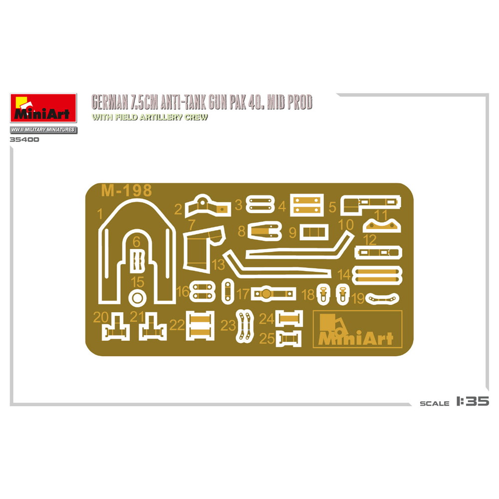 モデルはドイツの7.5cm対戦車砲Pak40中期生産型を1/35スケールで再現したプラスチックモデル組み立てキットです。