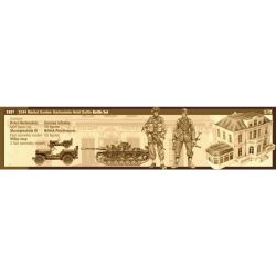 両軍兵士ともに各50体をモデル化しています。フィギュアはユニフォームのディテール、シワなどもシッカリと表現。さらにドイツ軍のIII号突撃砲1両と連合軍の1/4トン4×4トラック2台もセット。