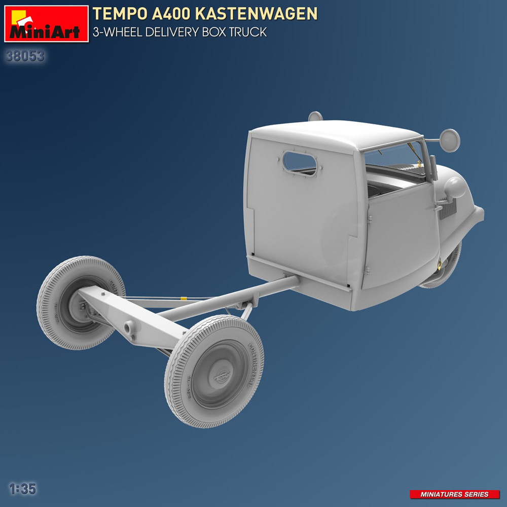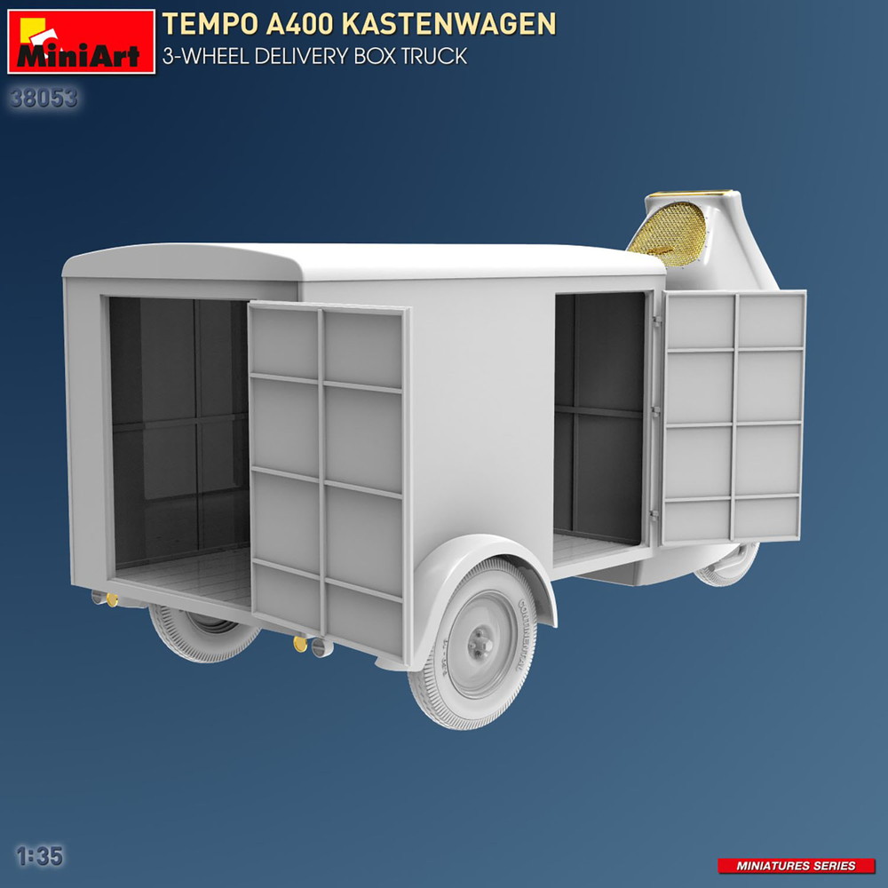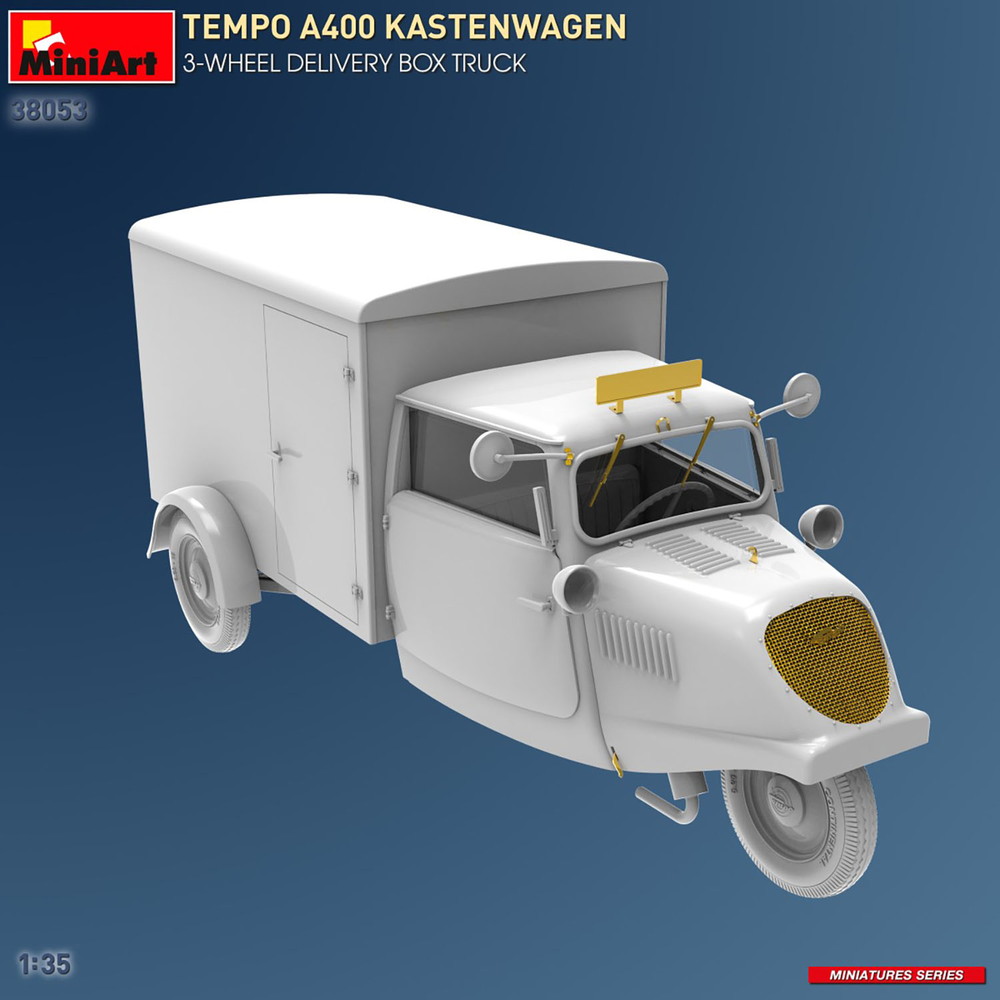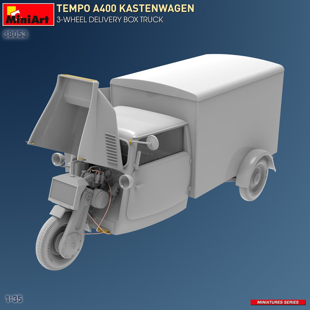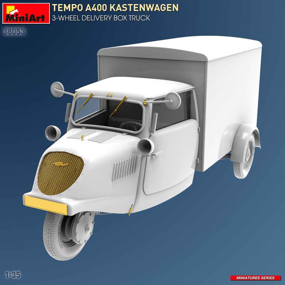 1/35スケールで1938年からドイツで製造された三輪商用車、テンポA400を再現したプラスチックモデル組み立てキットです。
