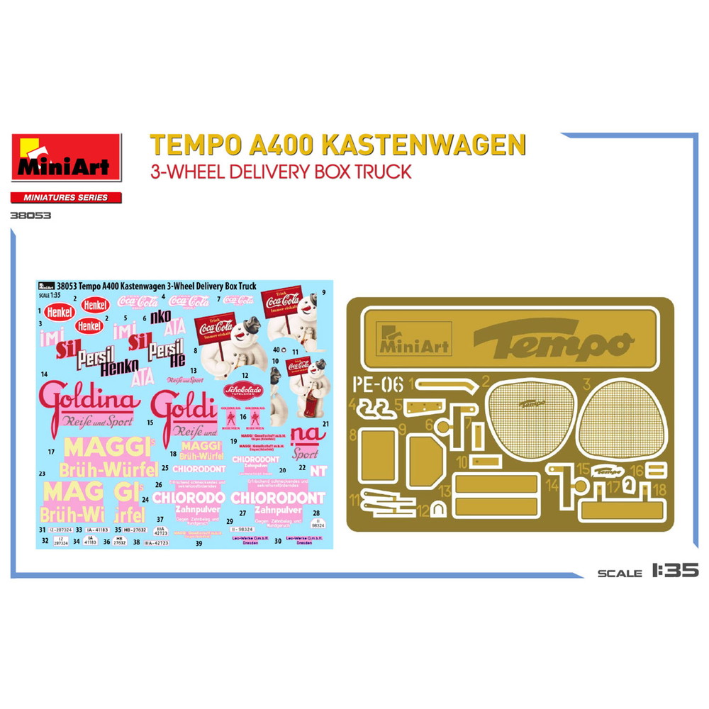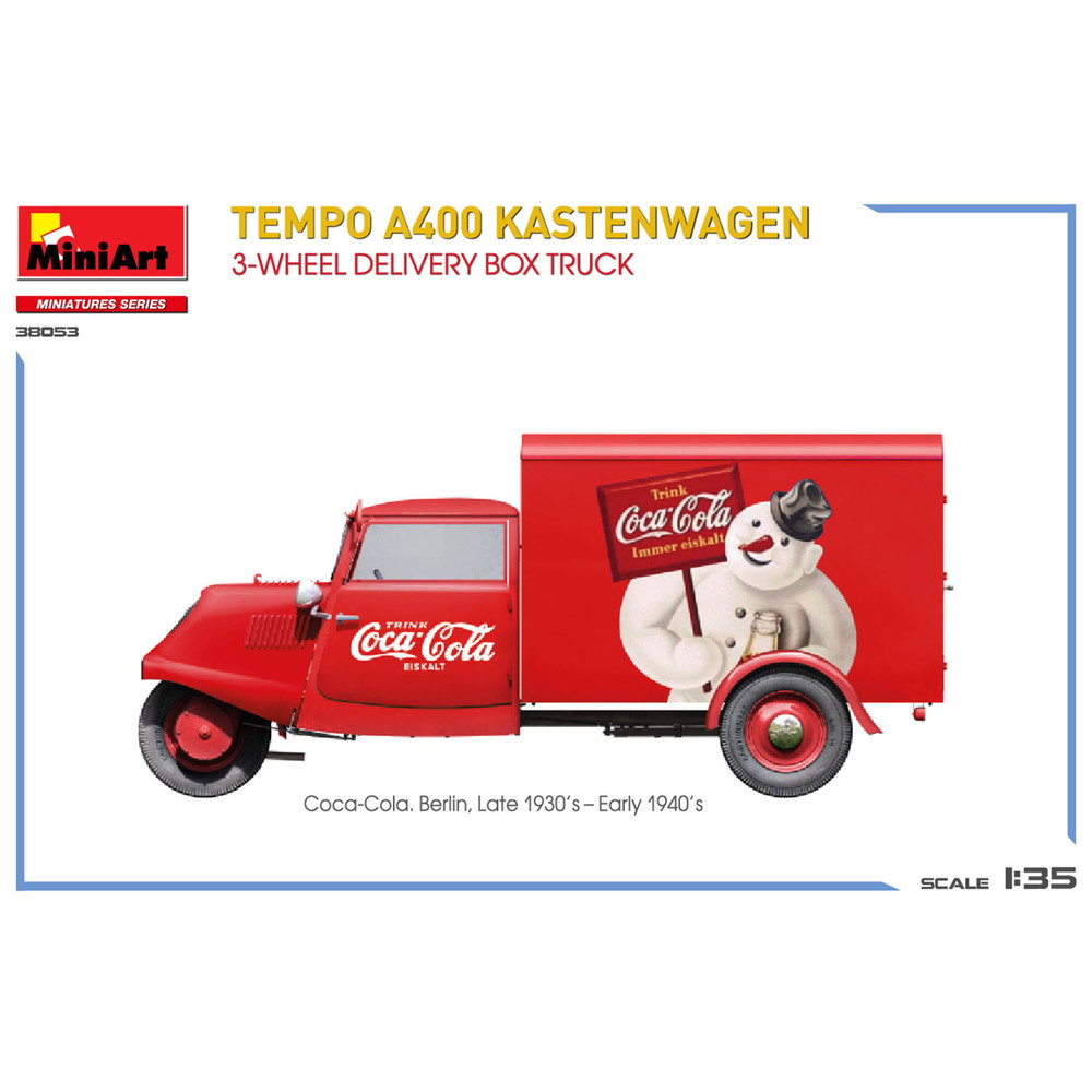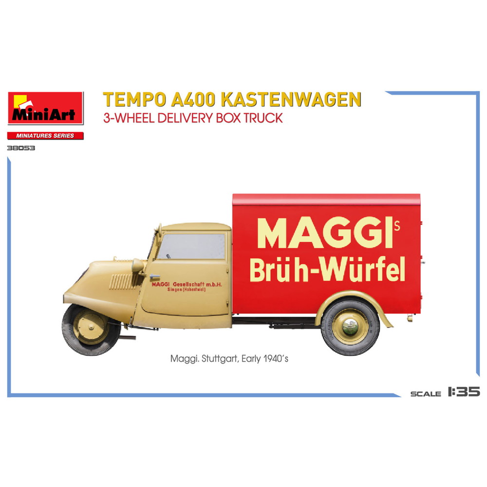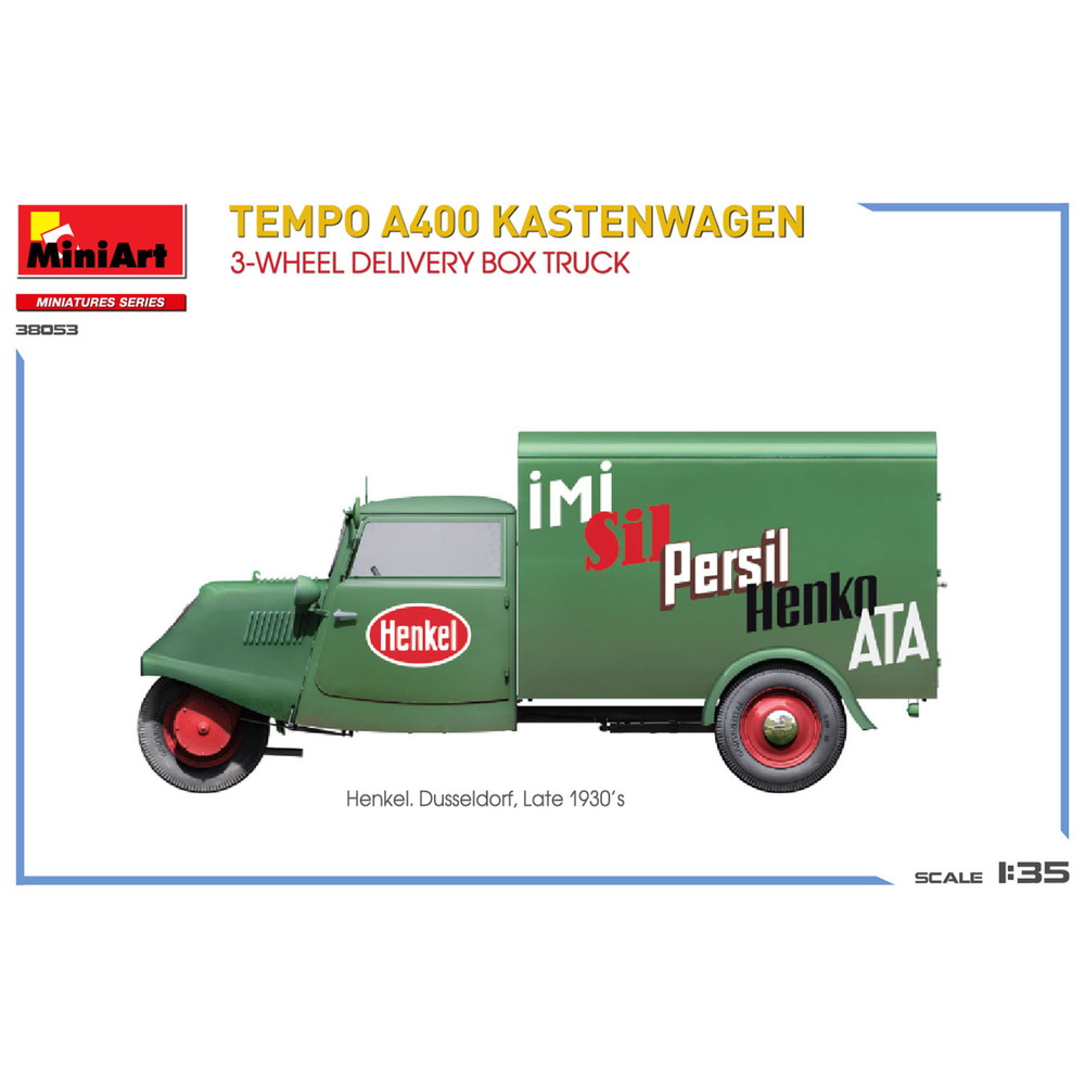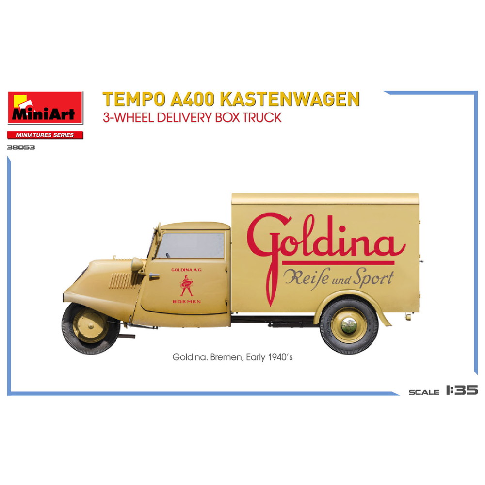 1/35スケールで1938年からドイツで製造された三輪商用車、テンポA400を再現したプラスチックモデル組み立てキットです。