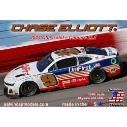 モデルは2024年NASCARに参戦するチェイス・エリオットがドライブしたシボレーカマロをサルビノス・モデルがオリジナル金型で再現した1/24スケールのプラスチックモデル組み立てキットです。