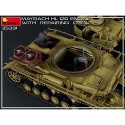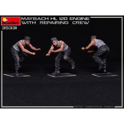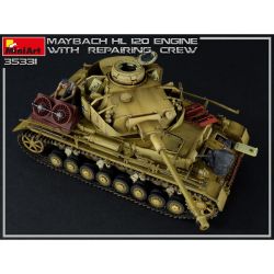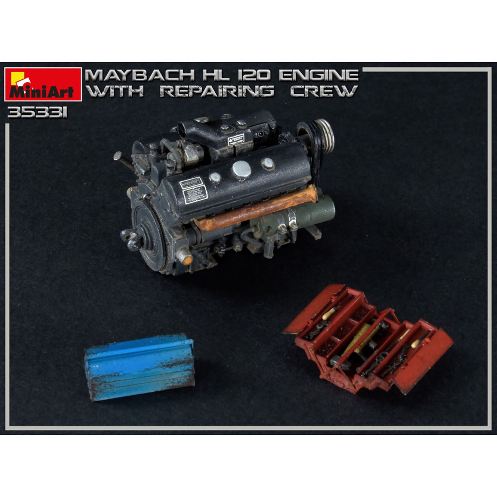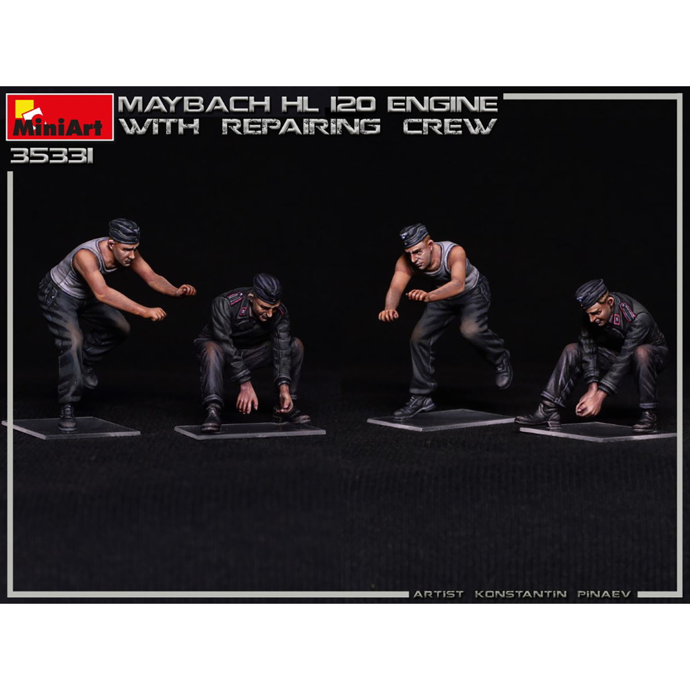 V型12気筒のエンジンブロックからベルト類、排気管な、補器類も細かくモデル化されメカニカルな仕上がり。加えて、エンジンを修理、整備するドイツ軍兵士のフィギュア2体もセット。
