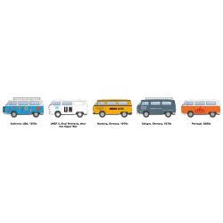 5種類のマーキングはカルトグラフ社製のデカールでセット。ヒッピー文化が誕生した70年代の雰囲気が再現できる花柄のマークなども楽しみです。