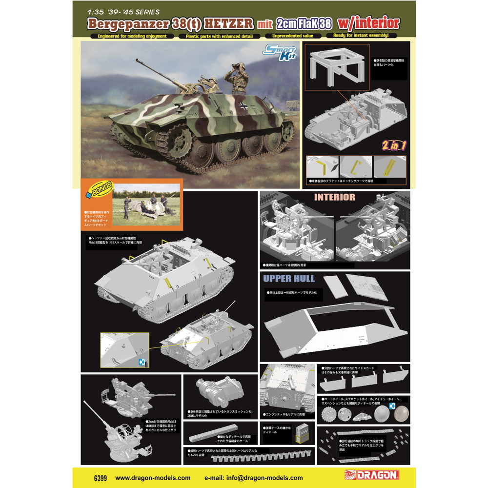 試作のみに終わったといわれる2cm対空機関砲Flak38を搭載したヘッツァー回収戦車を1/35スケールで詳細に再現。