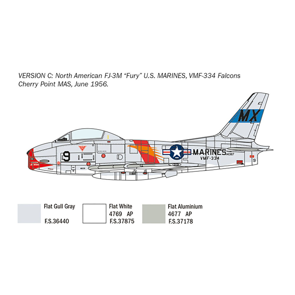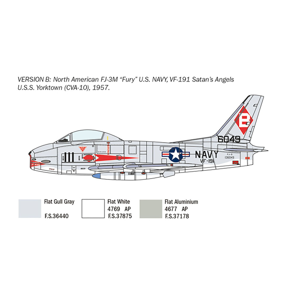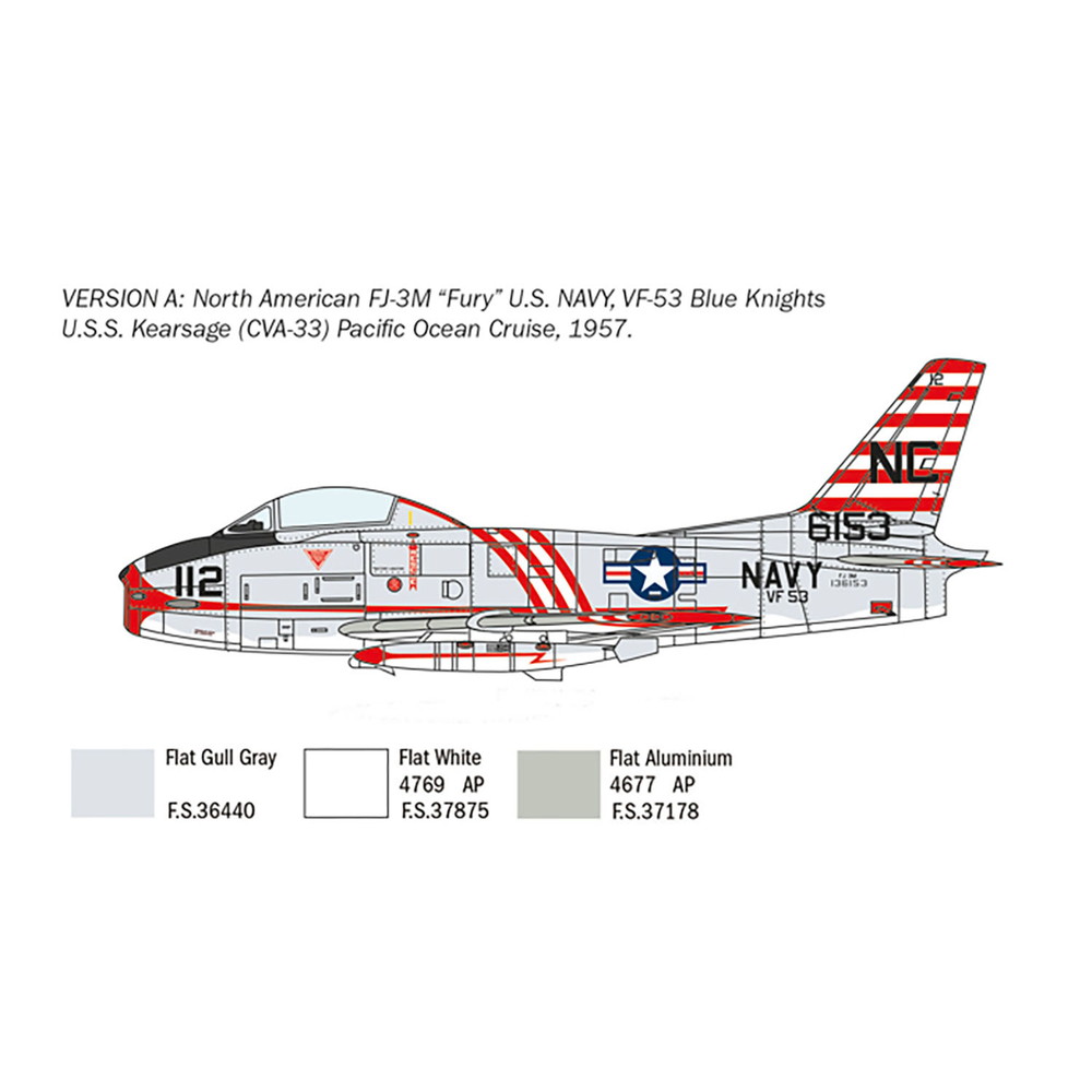 1950年代に活躍したアメリカのジェット戦闘機F-86セイバーの海軍向け艦上機型がFJ-2/3フューリーです。