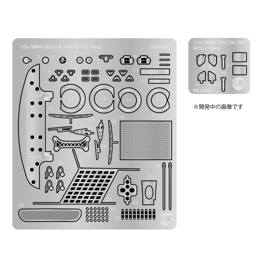 2005年のWTCCに参戦したBMW チーム ドイツのマシンを1/24スケールでモデル化したプラッツ/nunuの1/24キット(PN2407)をさらにシャープに演出するのが専用ディテールアップパーツセットです。