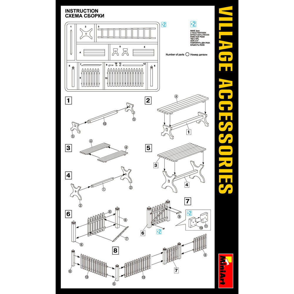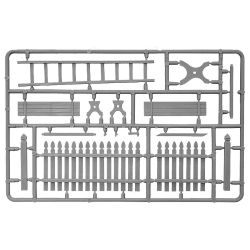郊外の家の情景作りに・1/35スケールで田舎の家の庭の周りに張り巡らされたフェンスやベンチなどを再現した組み立てキットです。