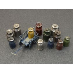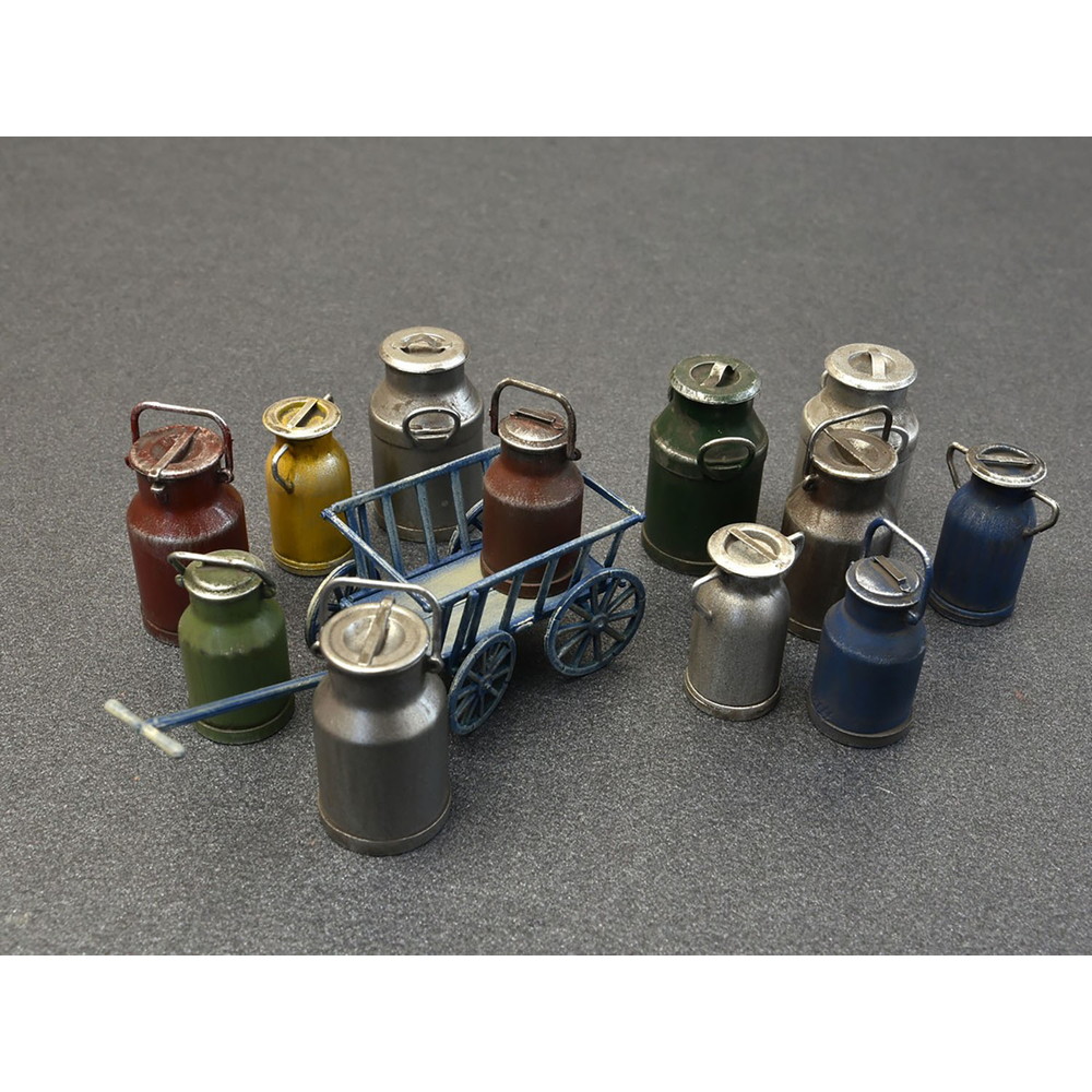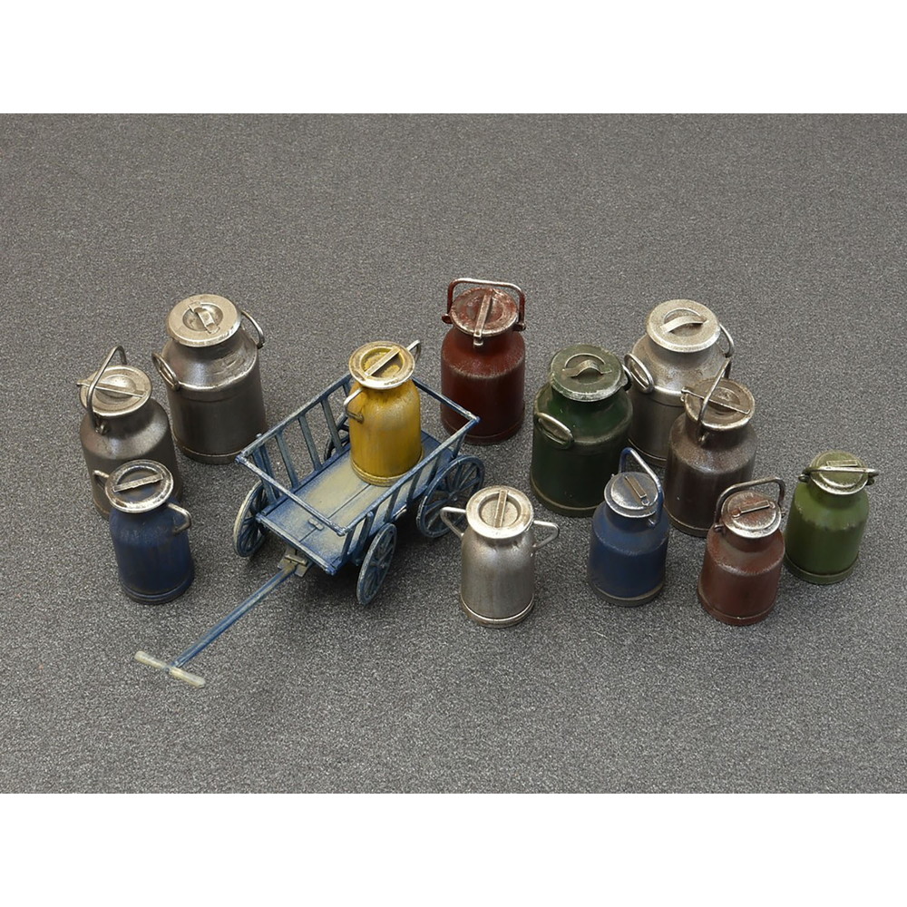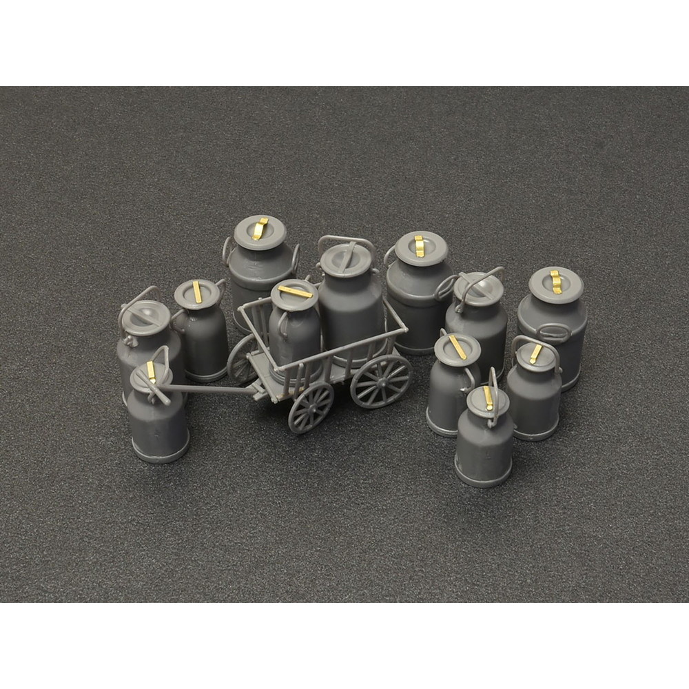 ミルク缶で情景作り・1/35スケールで牛乳の大型ミルク感とそれを運ぶ小型カートを再現。