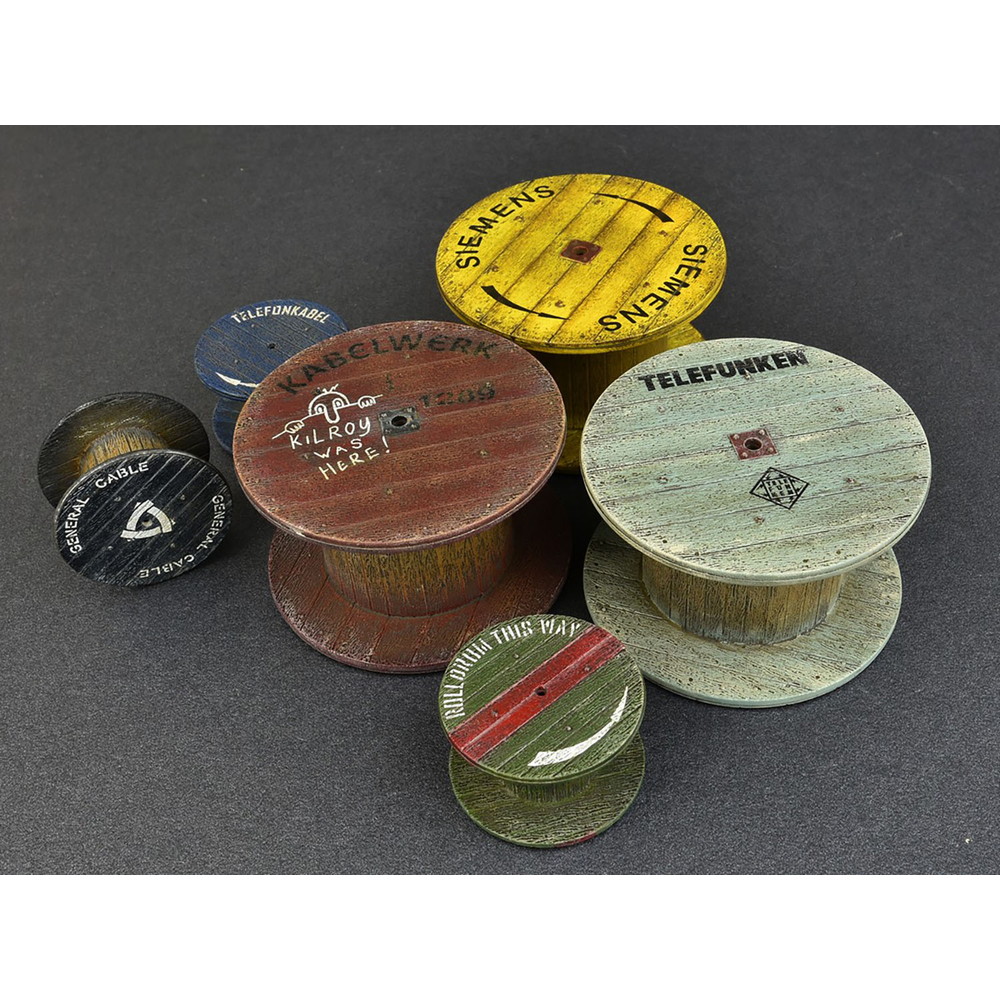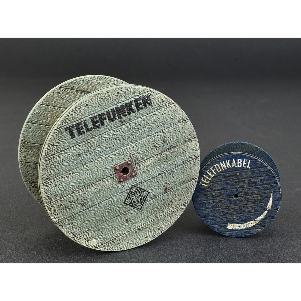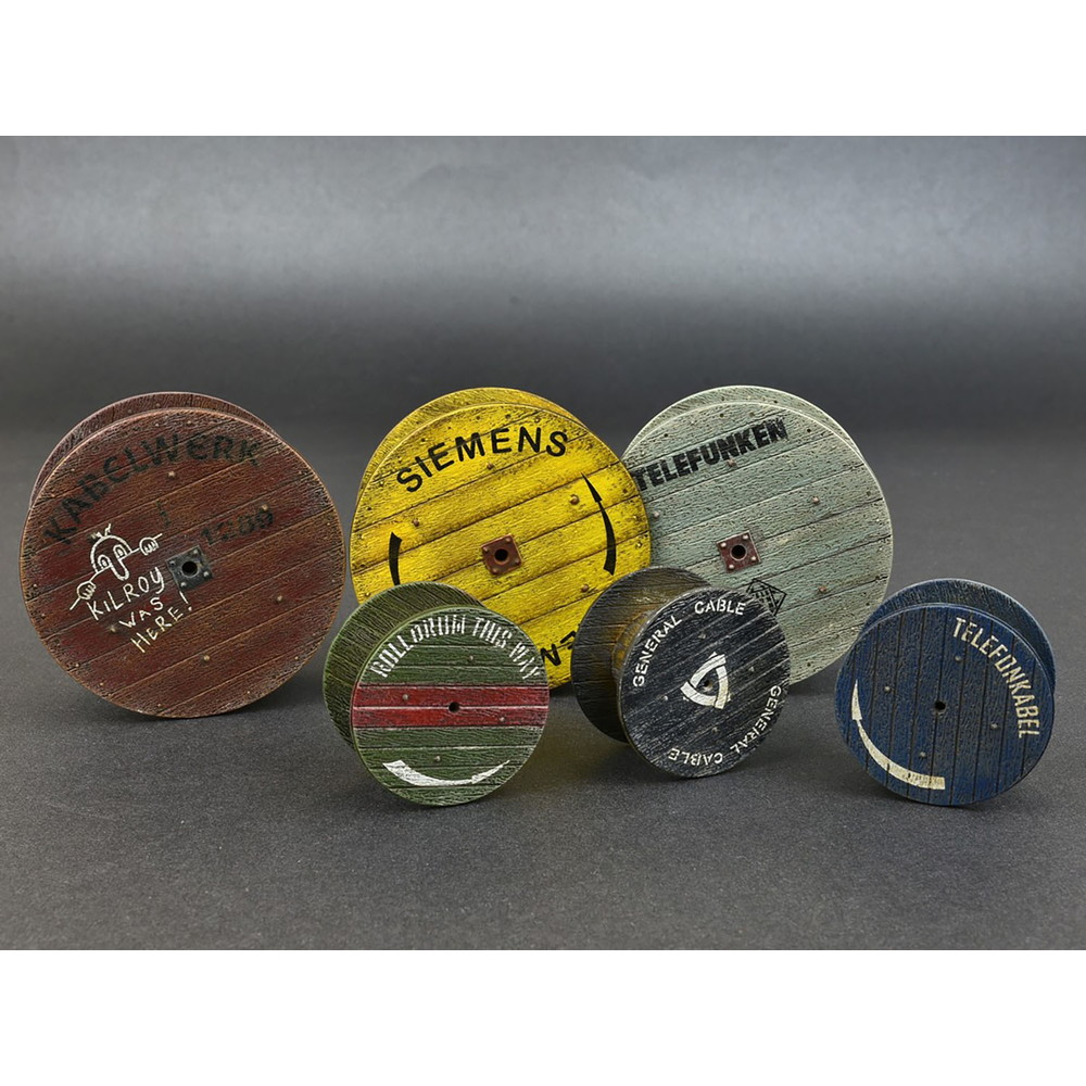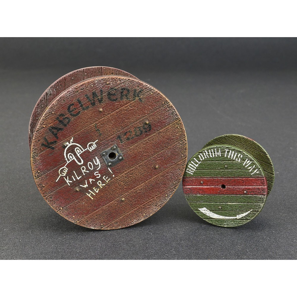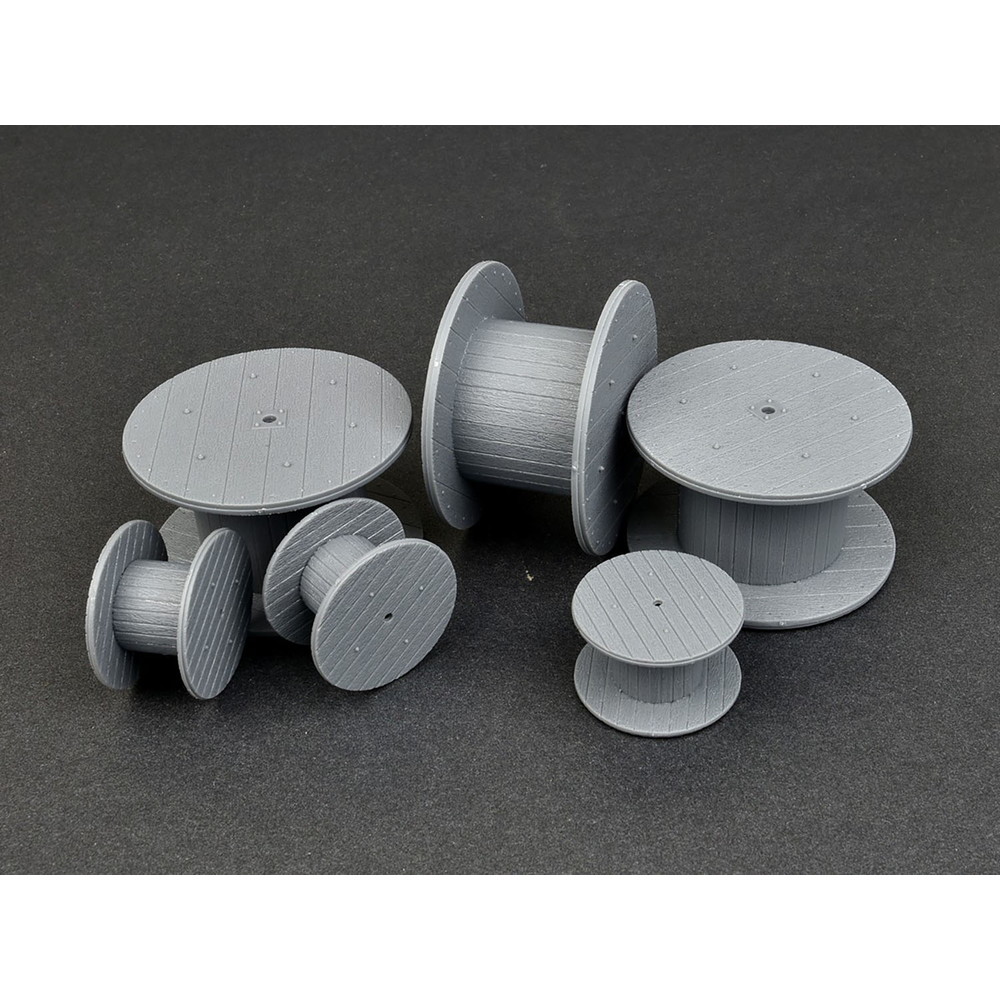 工事現場の雰囲気作りに・1/35スケールで電線などを巻き付ける木製のドラムをサイゲンした組み立てキット。