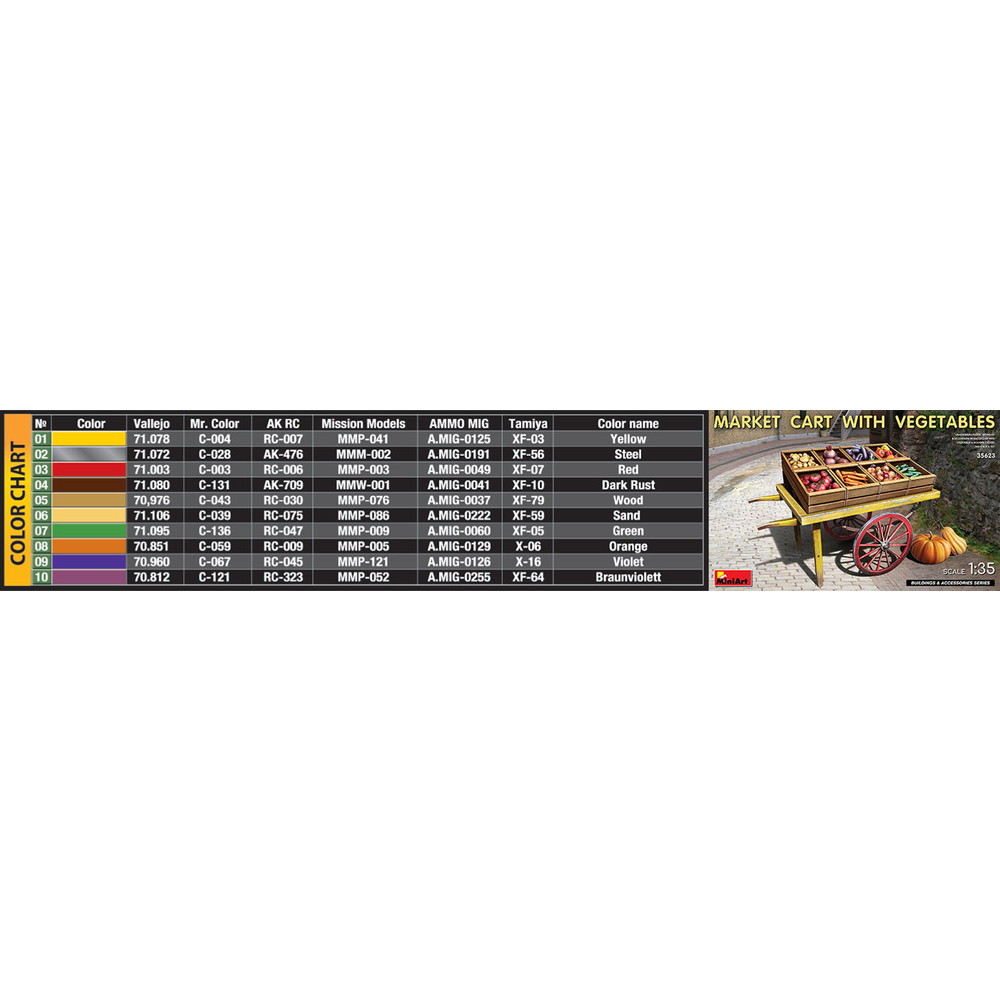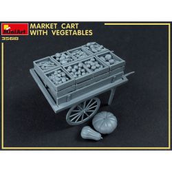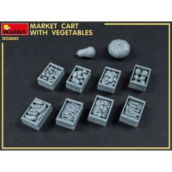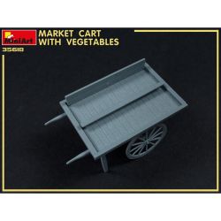 市場の賑やかさも見える・1/35スケールで倒しの台車を再現。その上に乗せるケースと野菜もセット