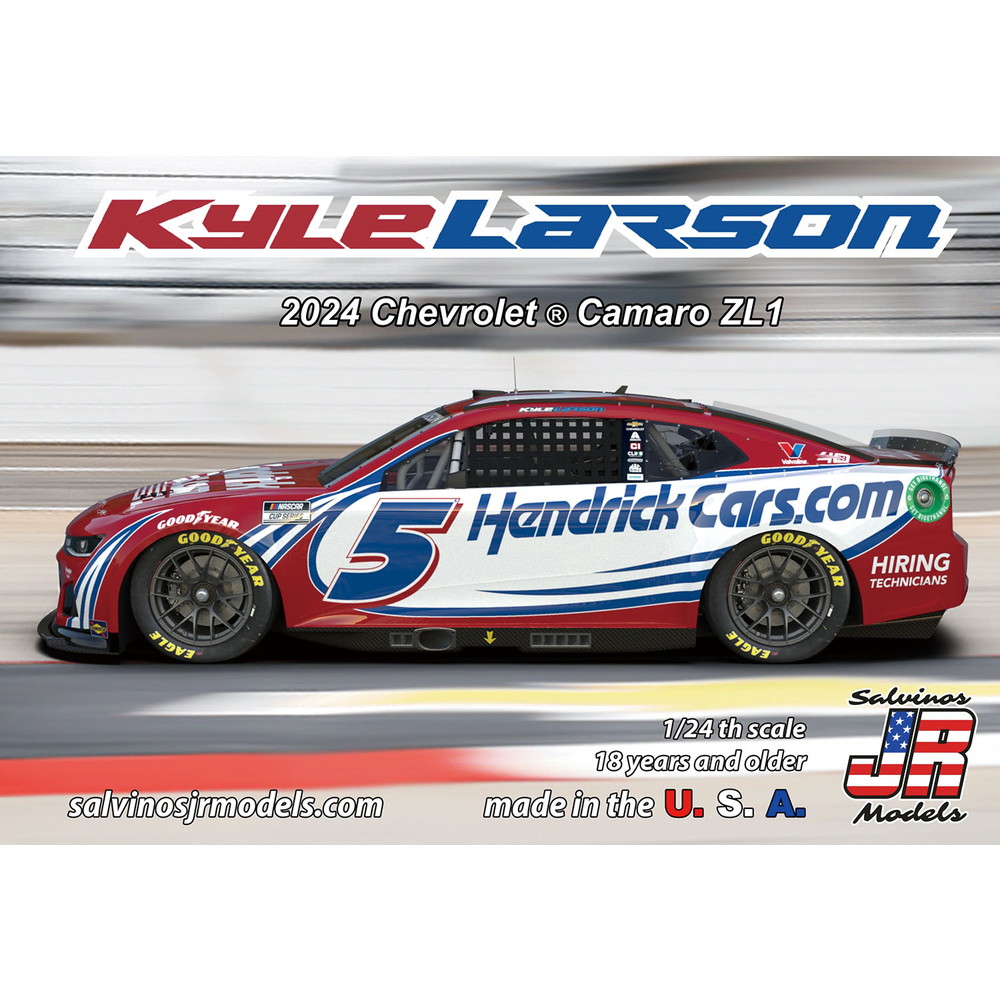 モデルは2024年NASCARに参戦したカイル・ラーソンがドライブするシボレー・カマロをサルビノス・モデルがオリジナル金型で再現した1/24スケールのプラスチックモデル組み立てキットです。
