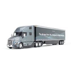 モデルはボルボのフラッグシップモデルVNL860トラクターと53フィートのパネルバントレーラーを1/50スケールで再現したダイキャストミニカーの塗装完成済みモデルです。