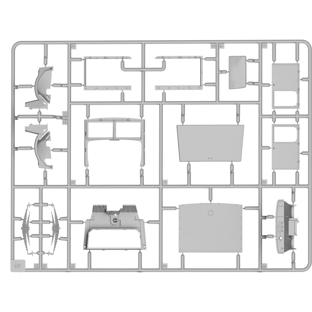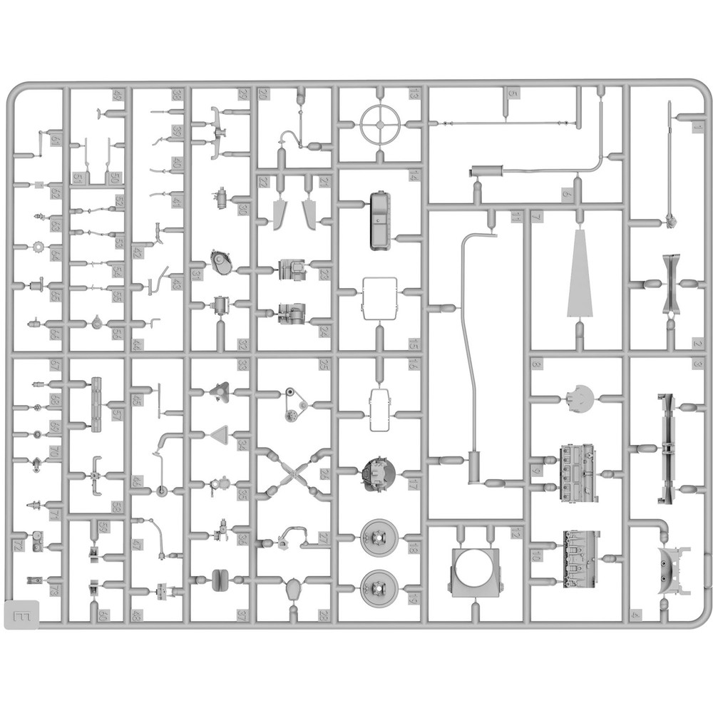 平面で構成されたシンプルなデザインのキャブを実感たっぷりに再現するほか、シャーシはエンジンやリーフスプリングのサスペンション、後輪駆動の駆動系に至るまで詳細にモデル化したフルディテールキット。