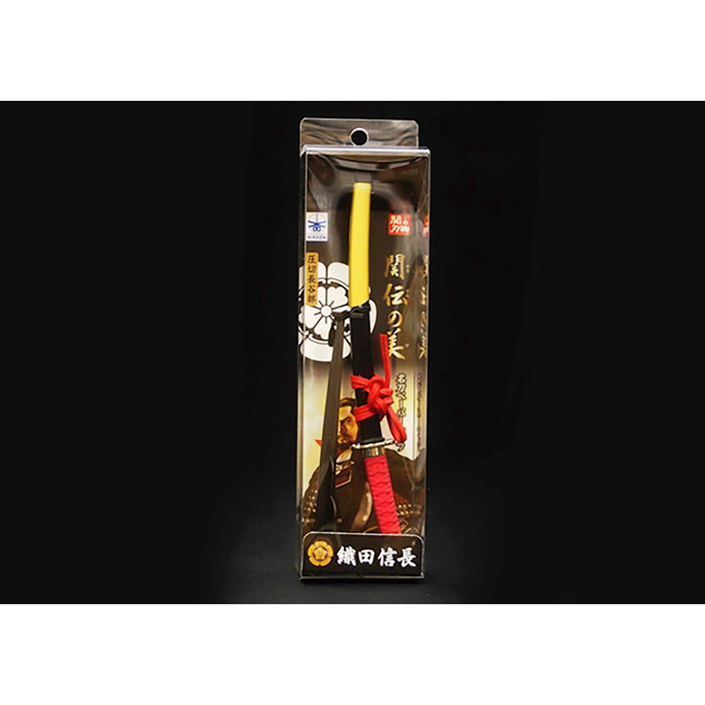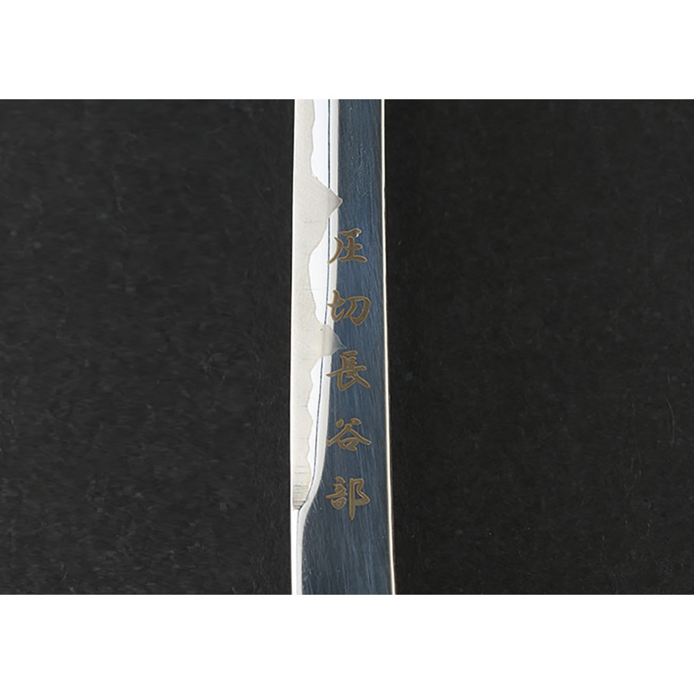 ●織田信長の愛刀をモチーフとしており、刃体には愛刀の名称”圧切長谷部”が入り、刃紋はのたれ刃紋形状となっております。