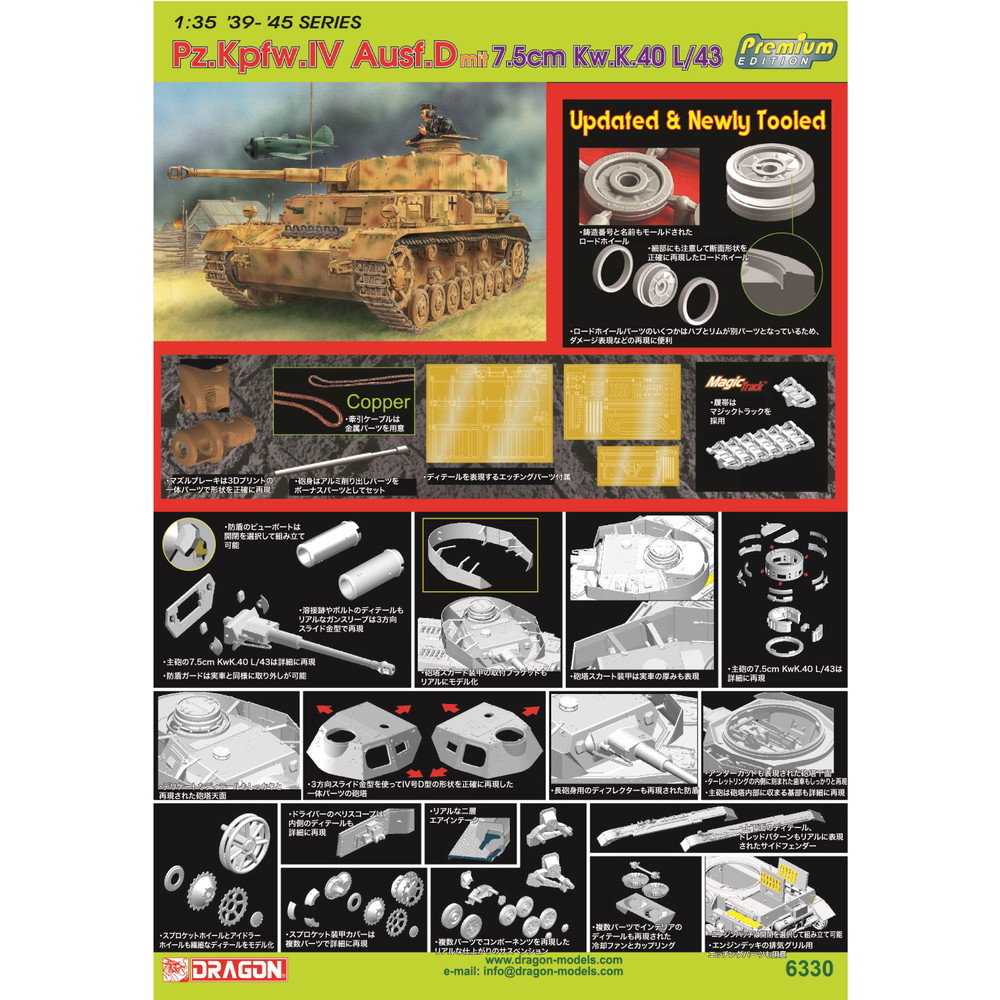 モデルはIV号D型の長砲身、7.5cm KwK.40/L43を搭載たタイプを1/35スケールでモデル化したプラスチックモデル組み立てキットです。