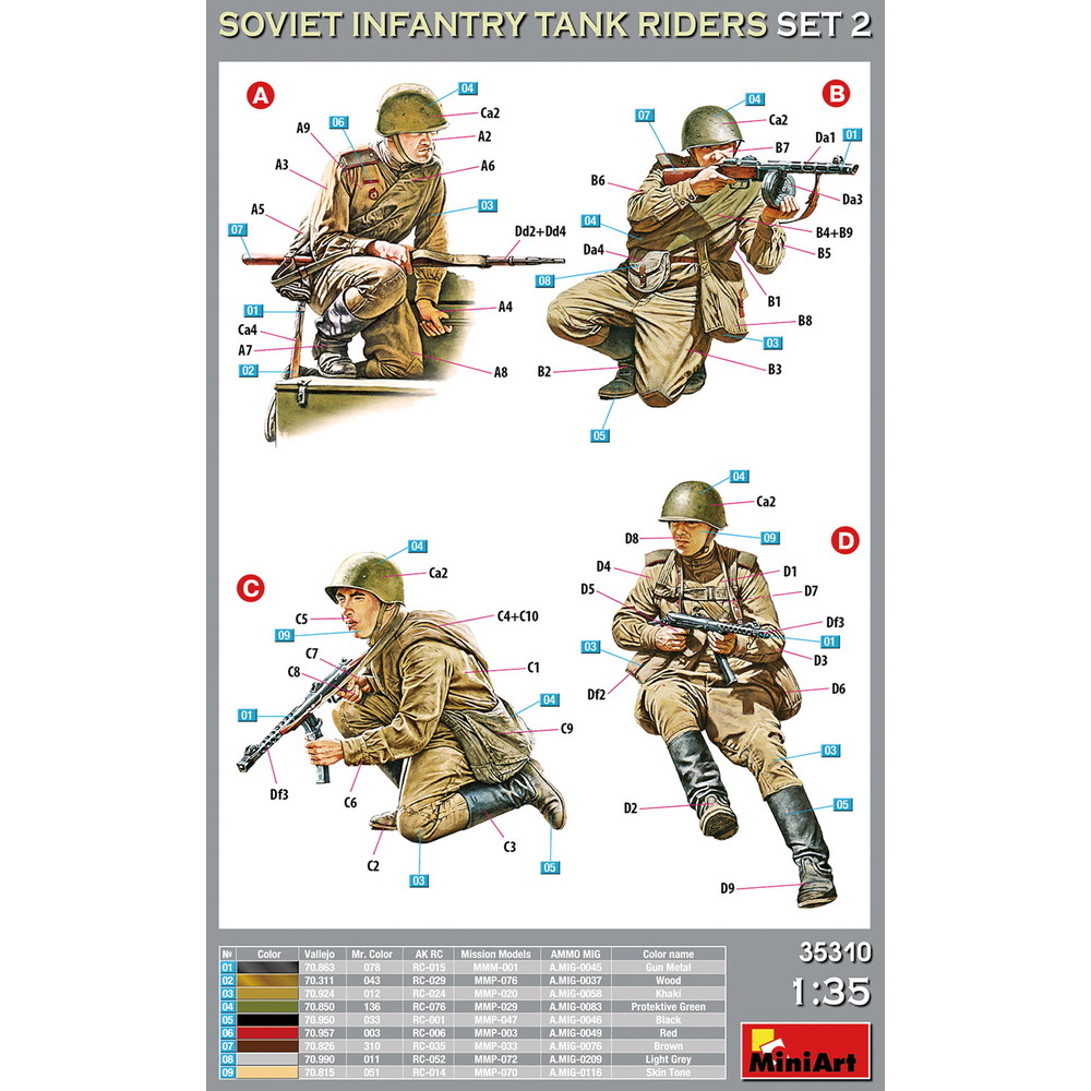ミニアートならではの繊細なディテールでソビエト軍歩兵のユニフォームを正確にモデル化。