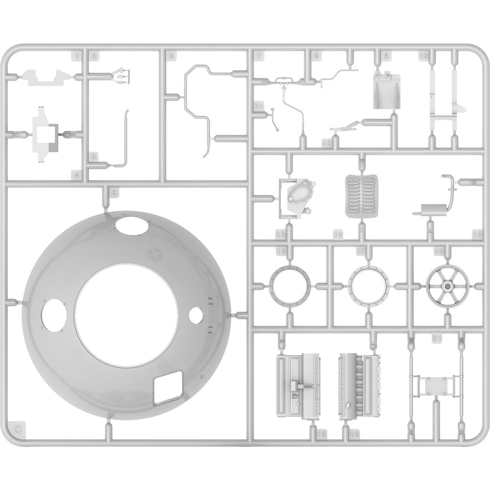 キットはインテリアシリーズのラインアップで球形車体の内部もモデル化しています。動力となるエンジンも補機類まで詳細に再現。