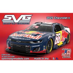モデルは2025年シーズンのNASCARカップシリーズでトラックハウス・レーシングのドライバー、シェーン・ヴァン・ギスバーゲンがドライブするシボレー・カマロをサルビノス・モデルのオリジナル金型で再現した1/24スケールのプラスチックモデル組み立てキットです。