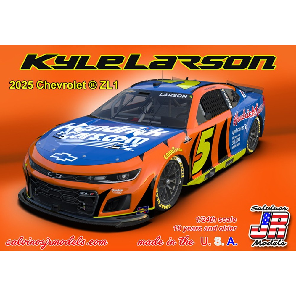 モデルは2025年4月にダーリントンで開催されたスローバックウィークエンドイベントでヘンドリックモータースポーツのカイル・ラーソンがドライブしたシボレー・カマロを再現した1/24スケールのプラスチックモデル組み立てキットです。