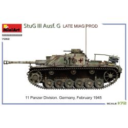 モデルは1/72スケールで第二次大戦のドイツ軍III号突撃砲を再現。中でも最終生産型G型の後期型でMIAG社製造タイプをモデル化したプラスチックモデル組み立てキットです。