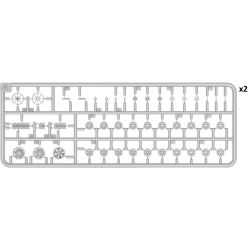 シャーシ下部は側面と底面を別パーツした箱組みタイプ。サスペンションアームは側面パネルに一体で再現しています。