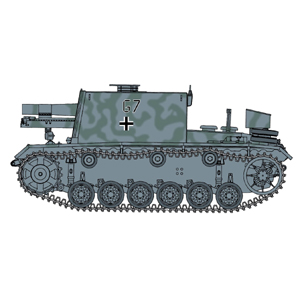 第二次世界大戦でソビエトに侵攻したドイツ軍が1942年のスターリングラード攻防戦に投入した歩兵支援用戦闘車両が15cm33B突撃歩兵砲です。1942年の9月に開発がスタート、10月には完成車両が引き渡されるという短期間で開発。車両のベースとなる車体にはIII号突撃砲のシャシーが使用され、そこに大型の15cm重歩兵砲sIG33を搭載するための密閉式固定戦闘室が設けられました。開発期間が短いことがあり、改修は最小限にとどめられ、デザインも箱型のシンプルなものでしたが、III号突撃砲E型シャシーをベースに最初に完成した12両はすぐにスターリングラードに投入。第177突撃大隊に配備され、奮戦を続けましたが、12両すべてがこの戦いで失われたのです。しかしその活躍は高く評価され、続いて12両が生産され、第23機甲師団第201戦車連隊に配備されて東部戦線で活躍を続けました。1943年4月から10月にかけてはスターリングラード占領を目指した第6軍に配属され、ソビエト軍と激戦を展開したのです。