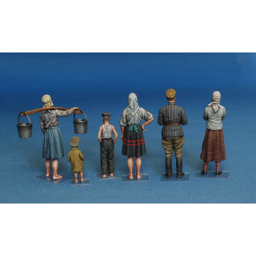 第二次大戦後のソビエトの地方農村の一般市民を再現した1/35スケールのプラスチックモデルフィギュアのセットです。