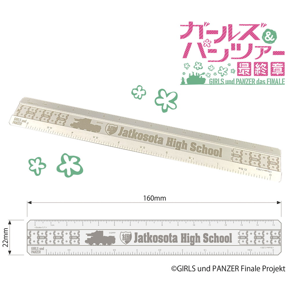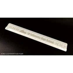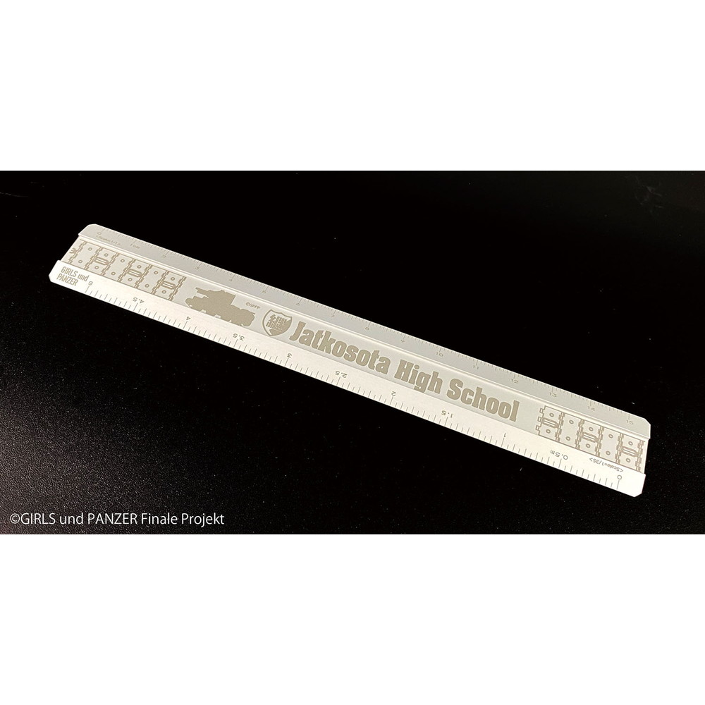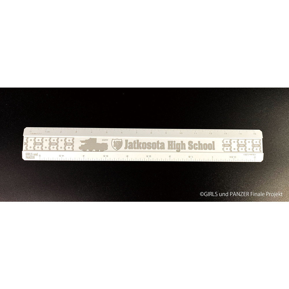 ●継続高校を代表する戦車BT-42突撃砲のシルエットと履帯をレーザー加工でデザインした金属製定規