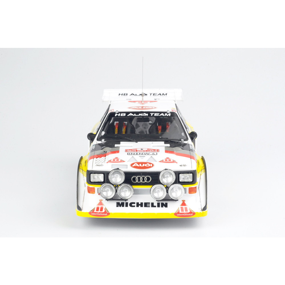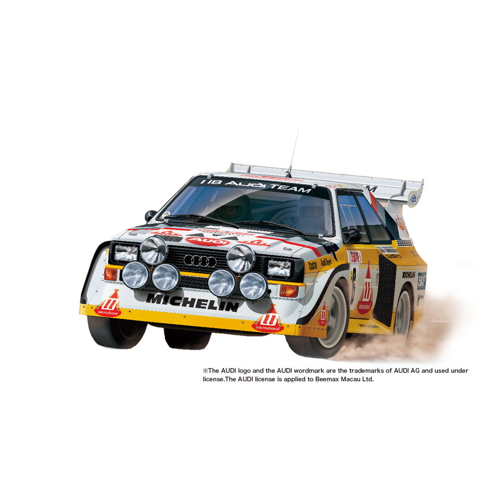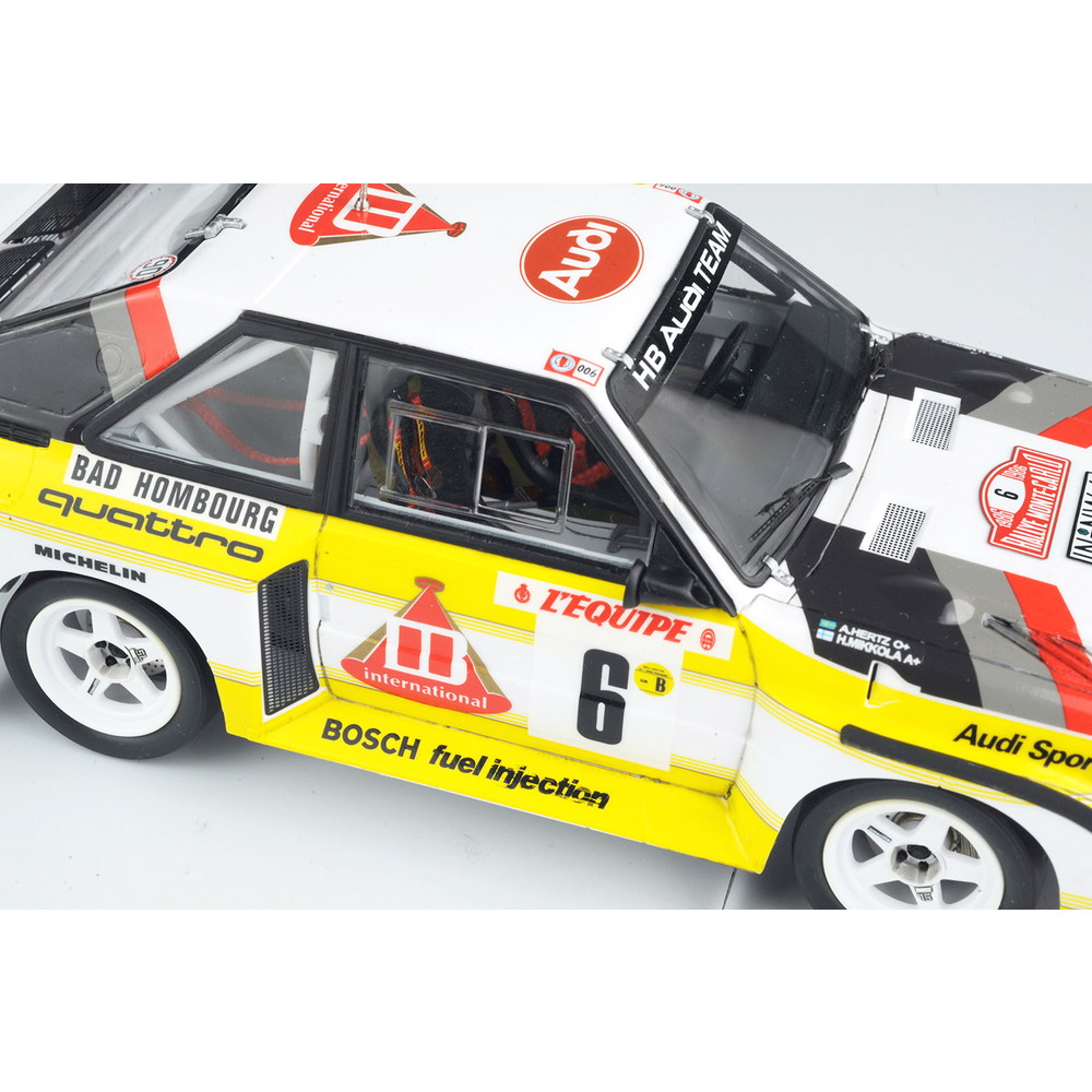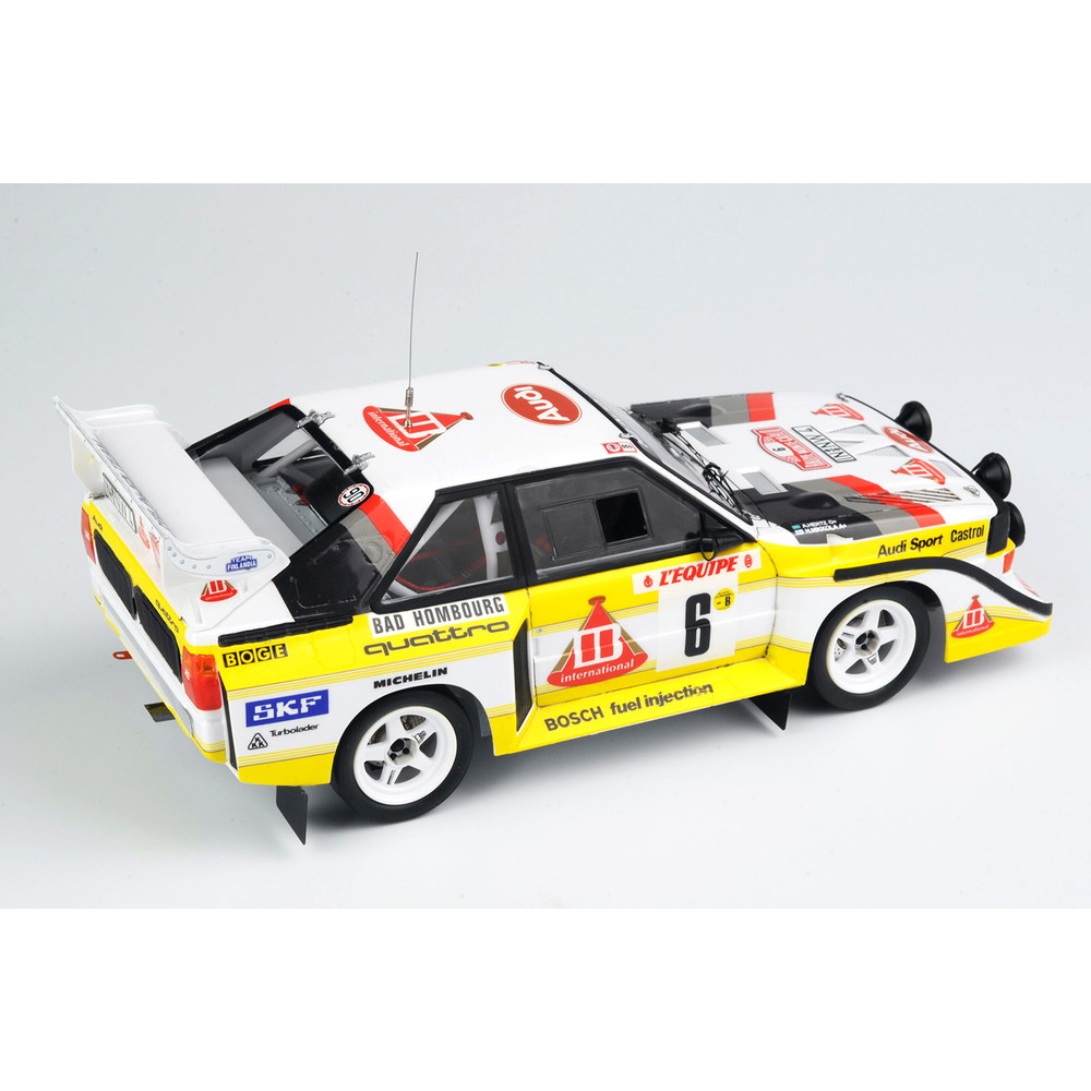 1986年のWRC第1戦、モンテカルロラリーに参戦したアウディのグループBラリーカー、アウディスポーツクワトロS1[E2]を1/24スケールで再現したプラスチックモデル組み立てキットです。
