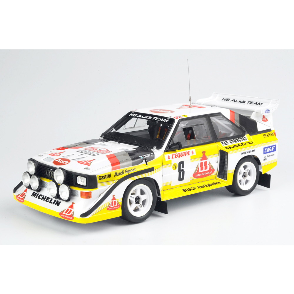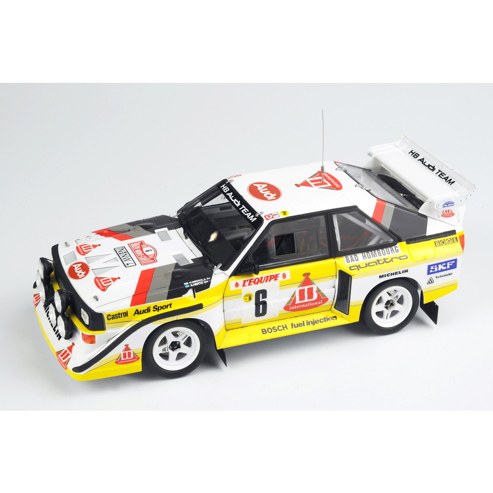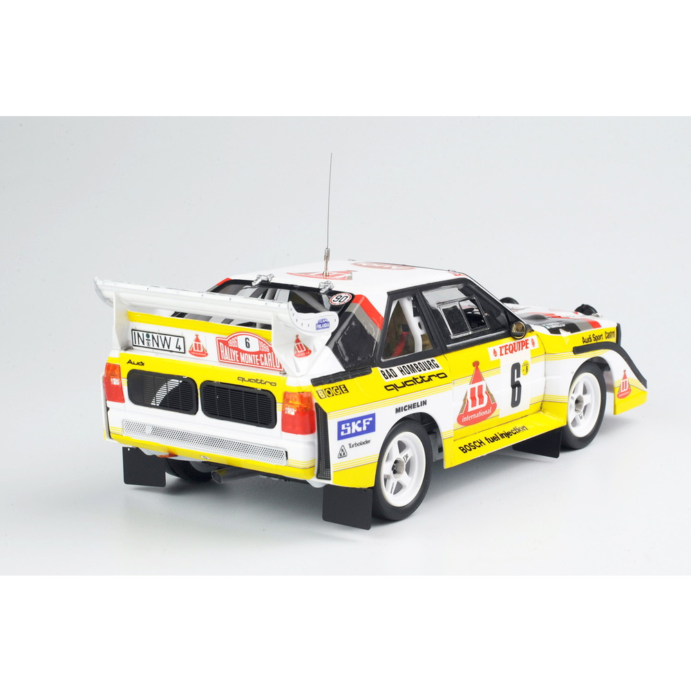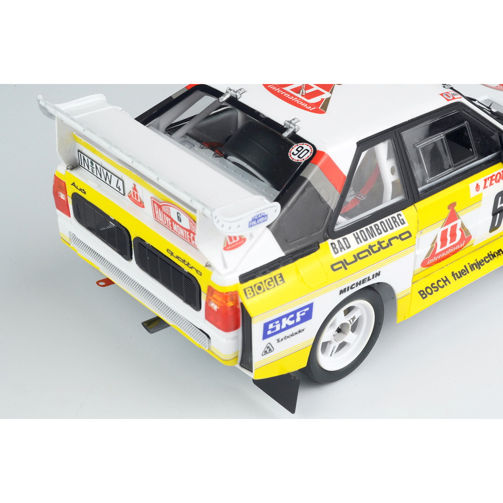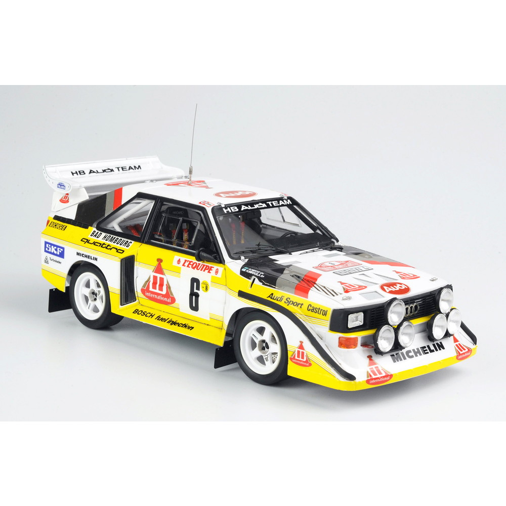 1986年のWRC第1戦、モンテカルロラリーに参戦したアウディのグループBラリーカー、アウディスポーツクワトロS1[E2]を1/24スケールで再現したプラスチックモデル組み立てキットです。