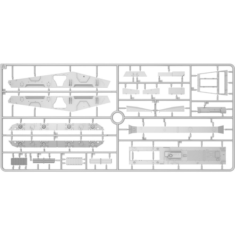 加えてメッシュの開閉式カバーはエッチングパーツで繊細に表現。さらに、車体下面は8輪駆動8輪独立縣画8輪駆動のメカニカルな駆動系を詳細にモデル化。