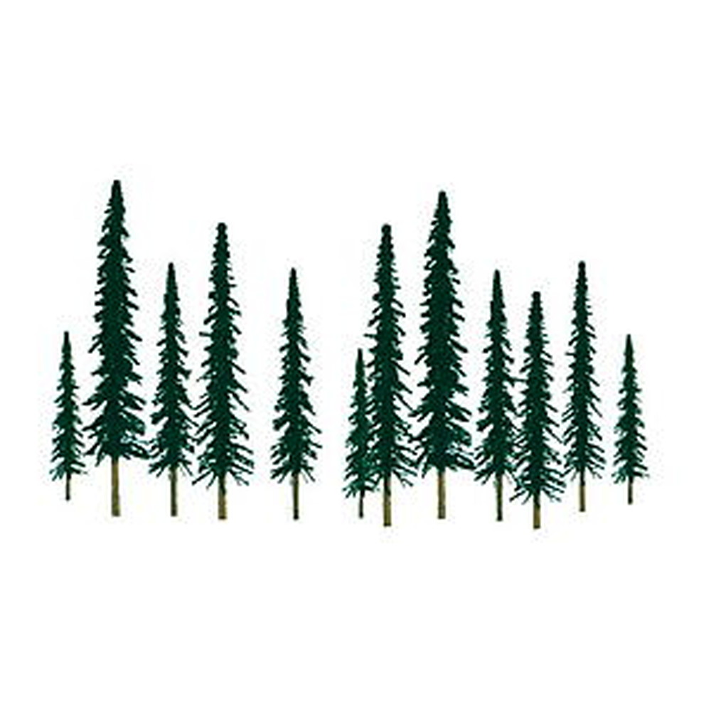 緑の葉が生い茂る季節を表現。高さはそれぞれ2 種類をセット。パーツの根本に取り付ける円形のベースパーツも用意されています。 それぞれ幹と枝、そして、緑の葉っぱがついた状態の完成済み。先端に行くほど尖った姿の針葉樹ならではのフォルムもしっかりとモデル化しています。葉っぱの色もヨーロッパなどの針葉樹によく見られる少し暗い、濃いめのグリーン。