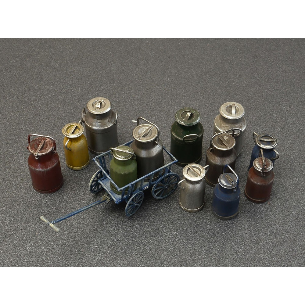 ミルク缶で情景作り・1/35スケールで牛乳の大型ミルク感とそれを運ぶ小型カートを再現。