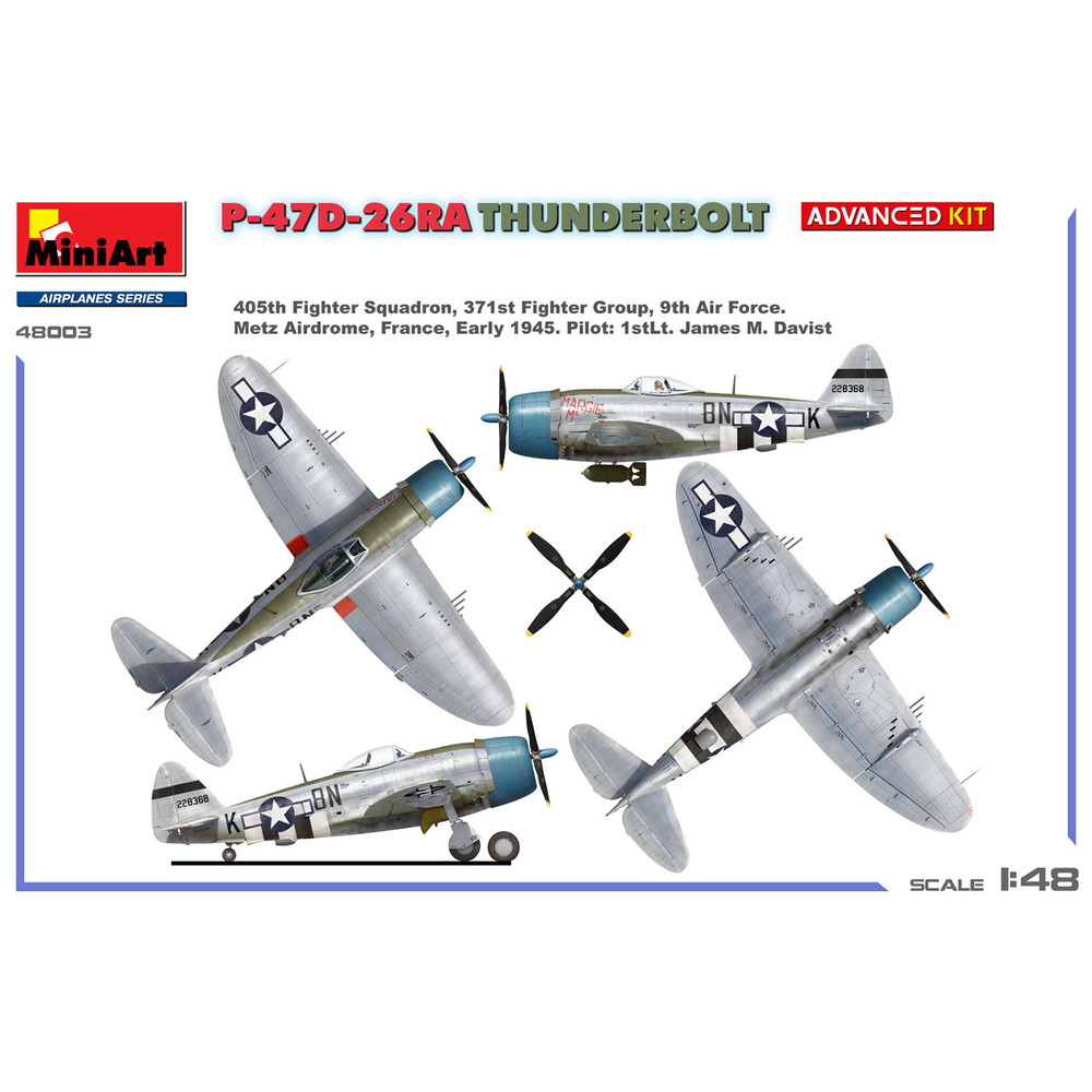 搭乗機と第9空軍第371戦闘グループ第405戦闘飛行隊の1stLt.James M. Davist搭乗機の3種をデカールでセット