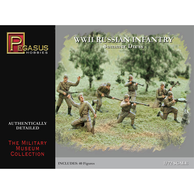 1/72スケールで第二次世界大戦のソビエト軍歩兵を夏季ユニフォーム姿で再現したプラスチックモデル組み立てキットです。