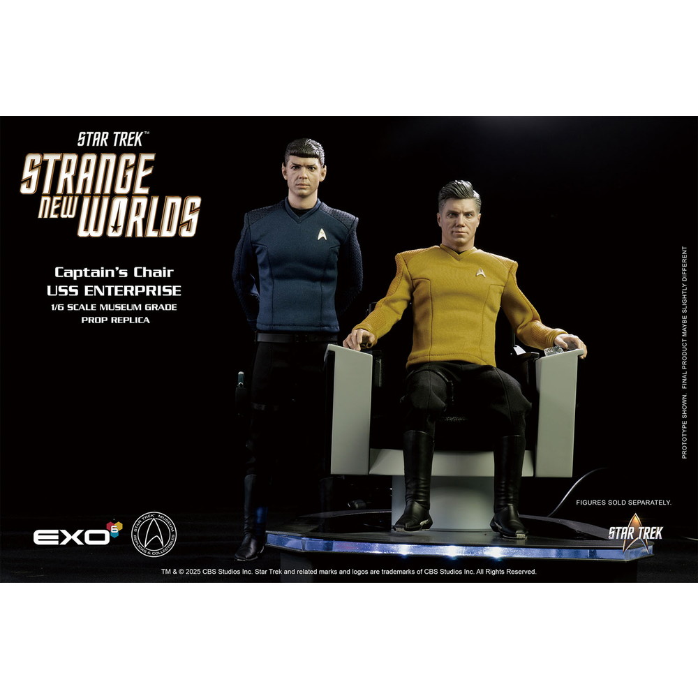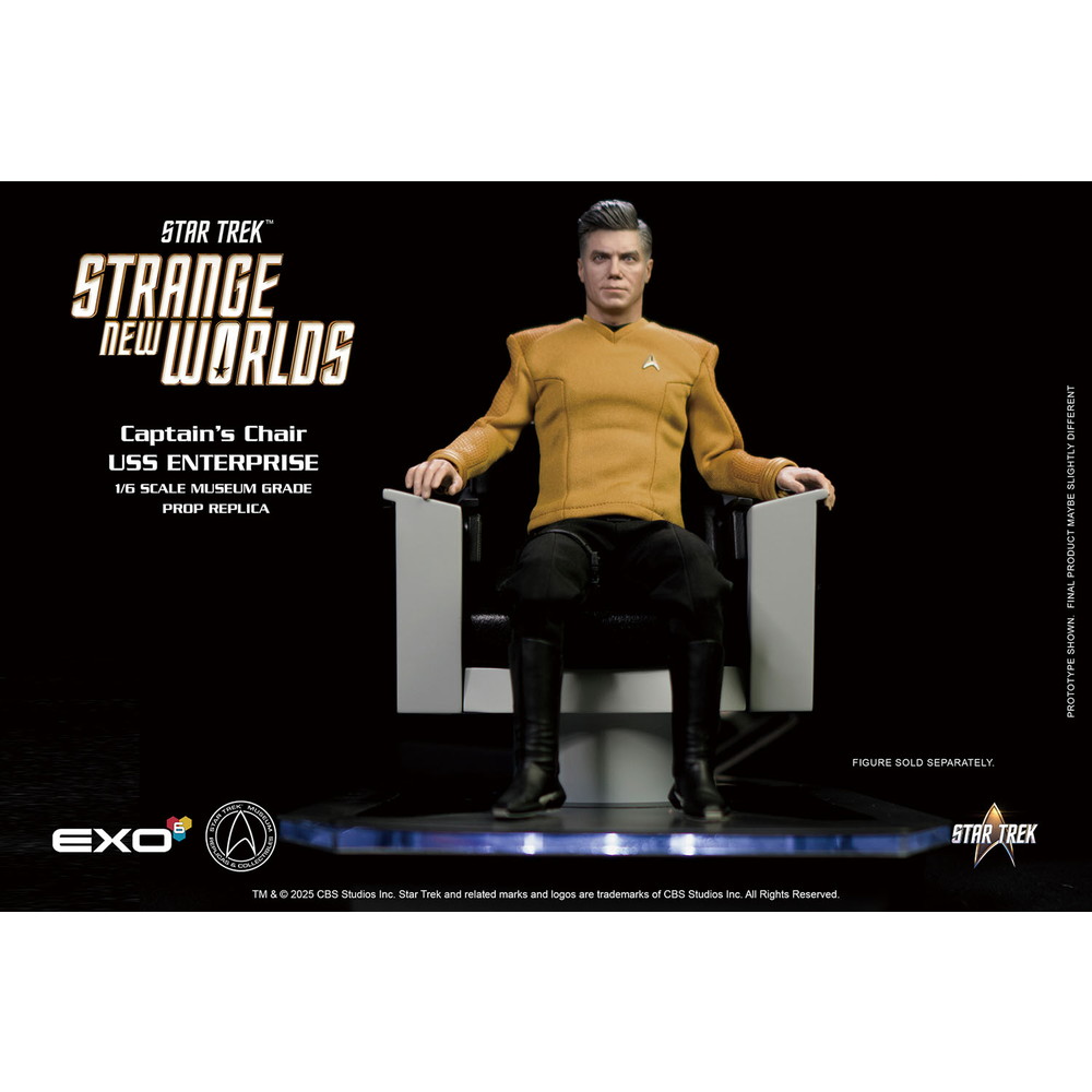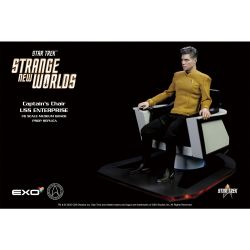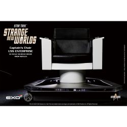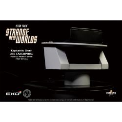 完全新金型・新造形でそのデザイン、ディテールをリアルに再現したストレンジ・ニュー・ワールドのU.S.S.エンタープライズNCC-1701に登場したクリストファー・パイク船長が指揮を取るキャプテンズ・チェア、船長席を再現した組み立て完成済みのモデルです。