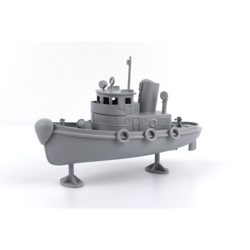 甲板上部のキャビンや煙突、ライトなど船体側面に装備されたタイヤなどもモデル化。