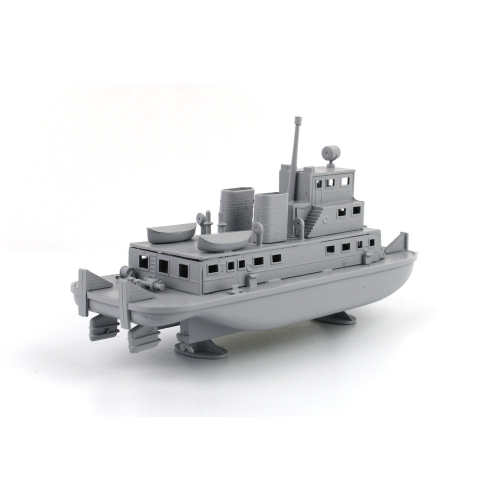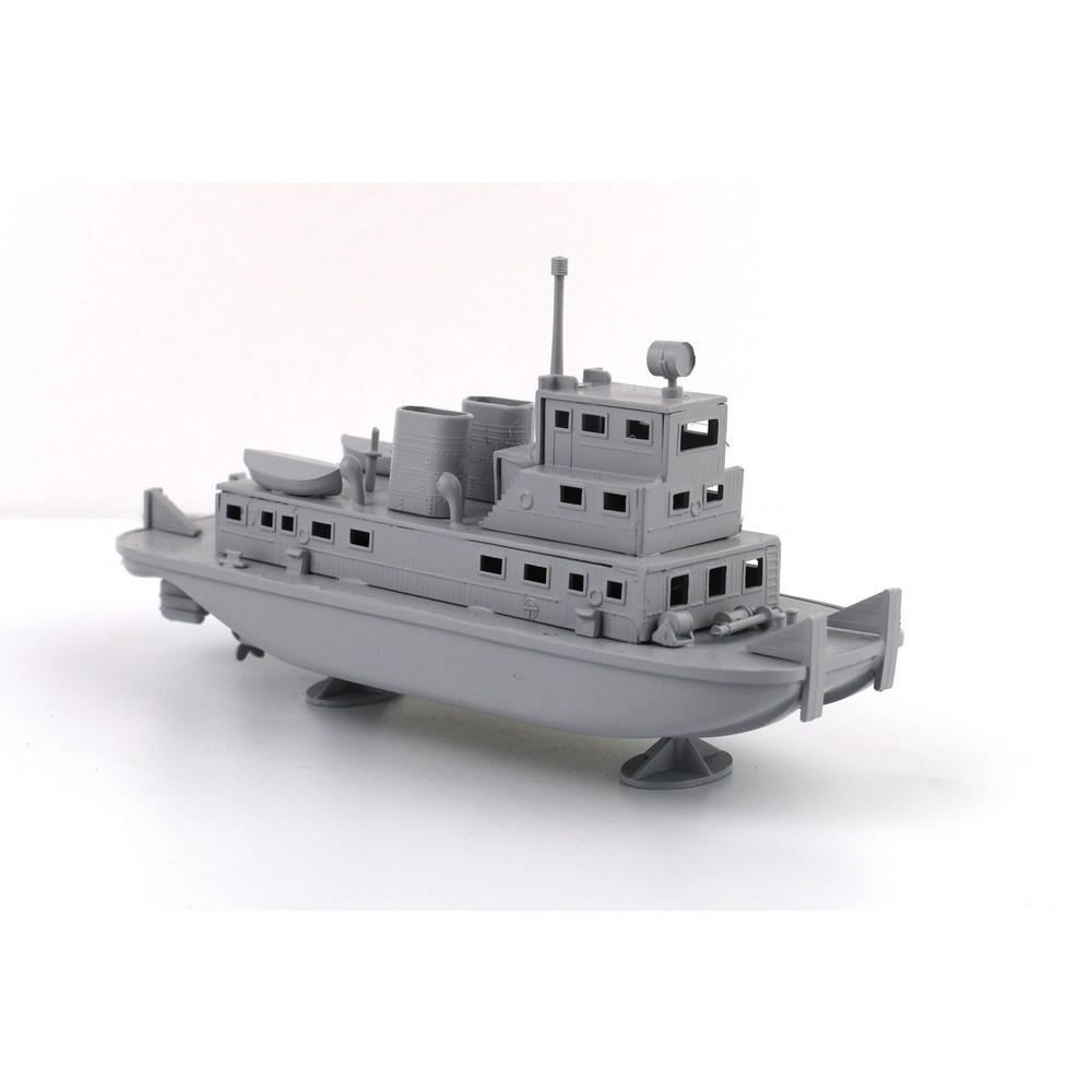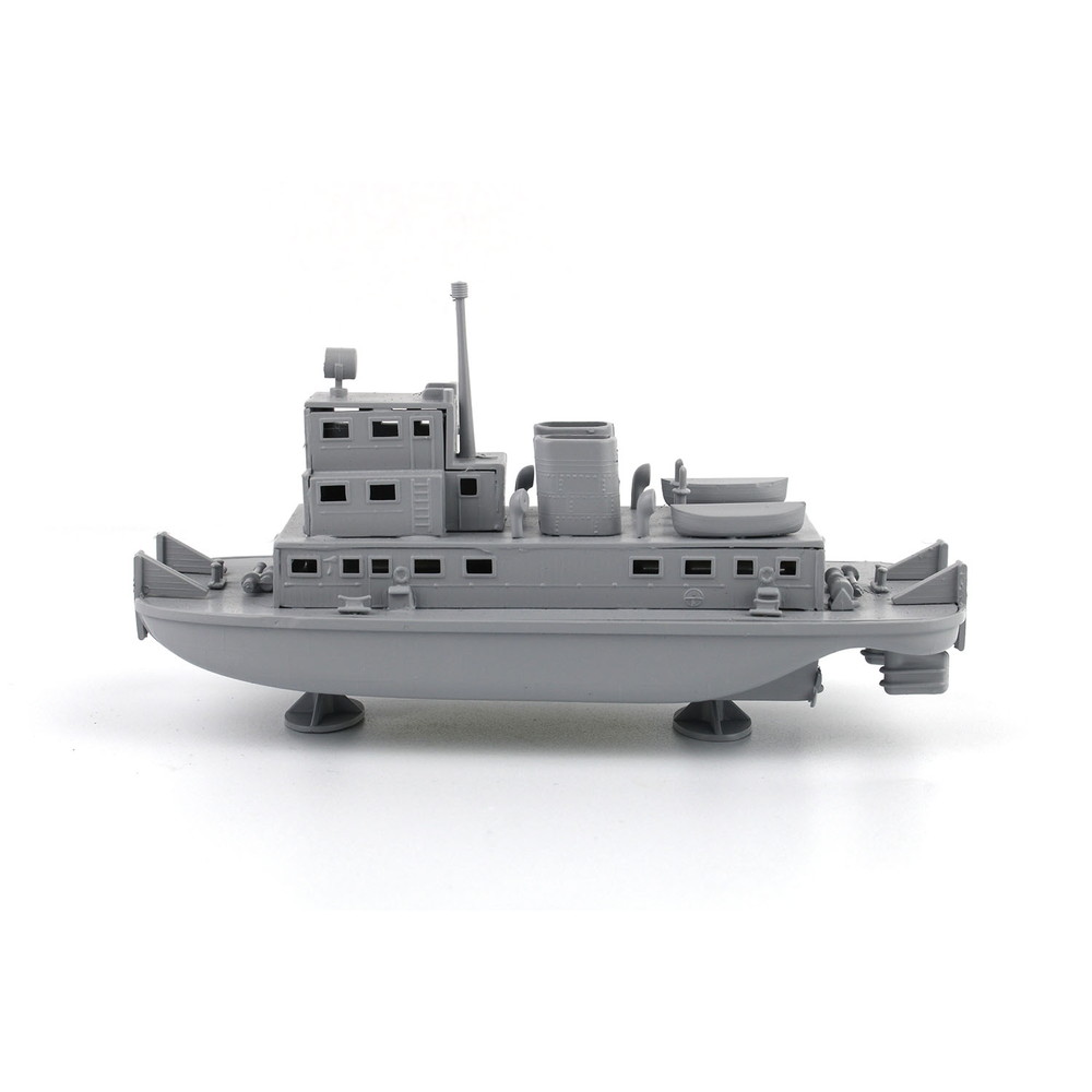 船体は一体成型パーツで外洋を航行する船舶とは異なる長方形の形状をしっかりと表現。