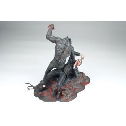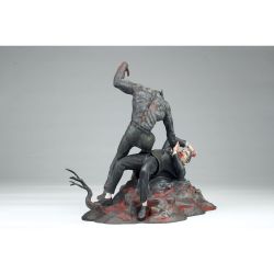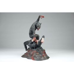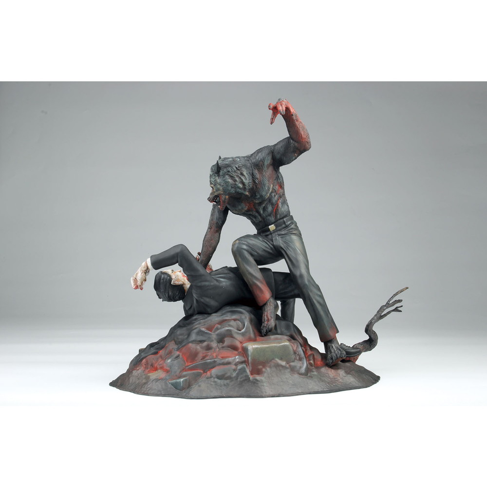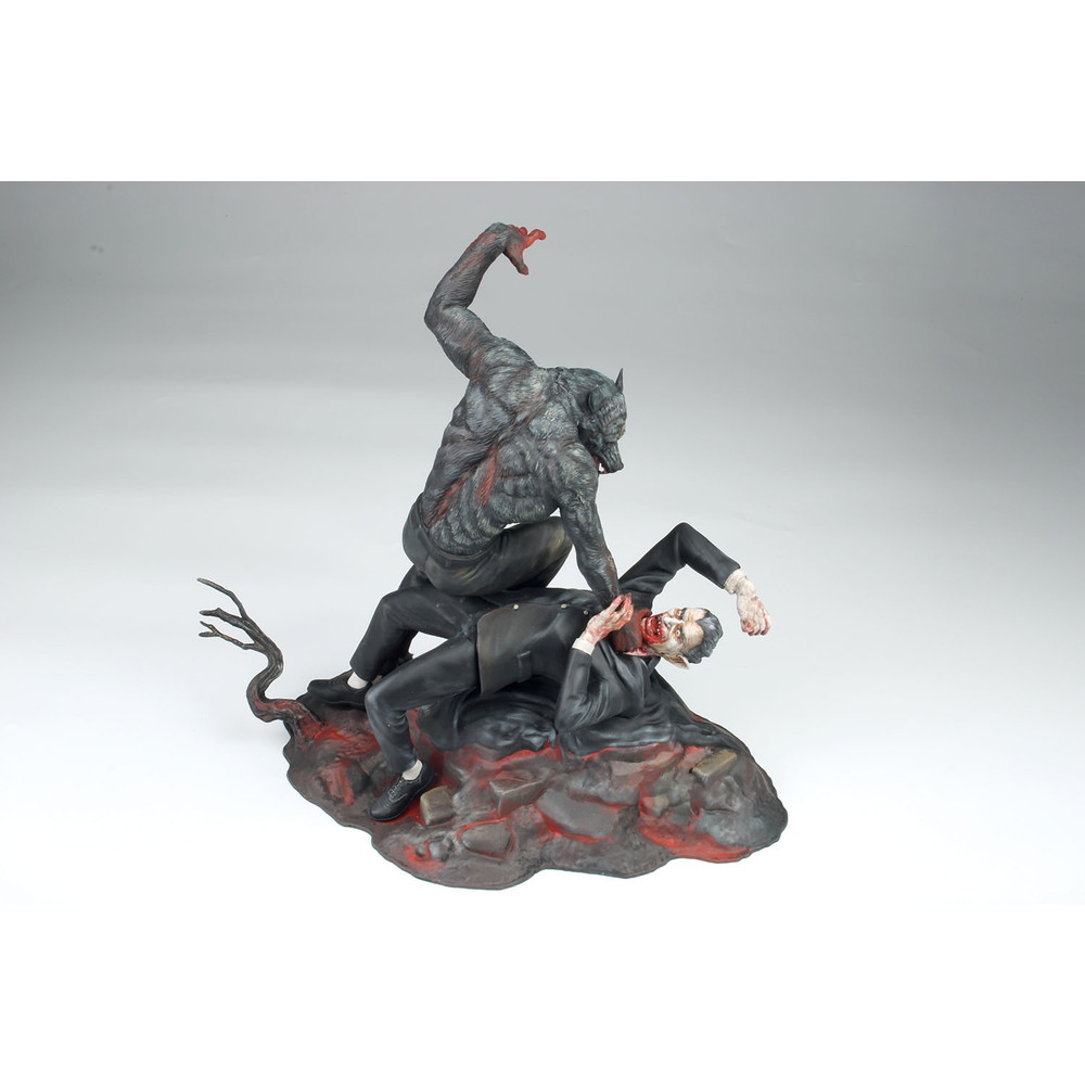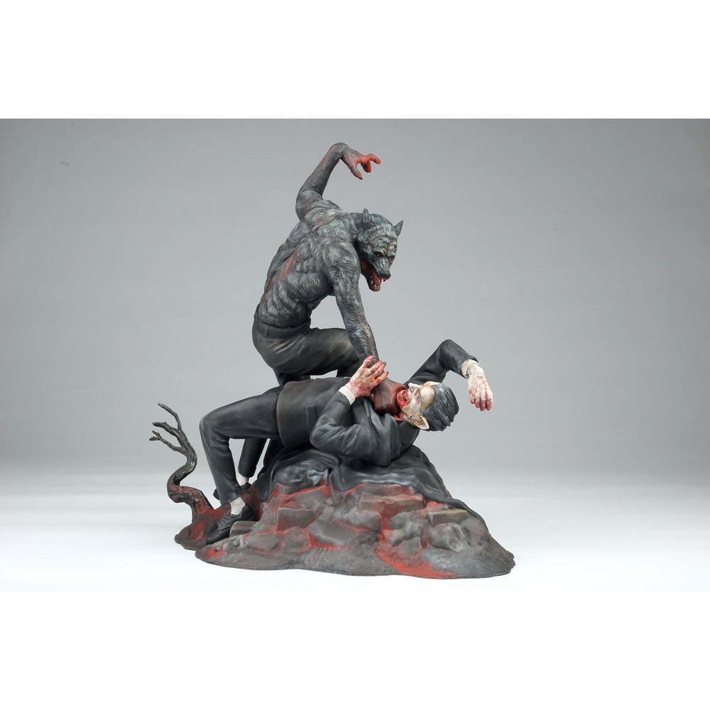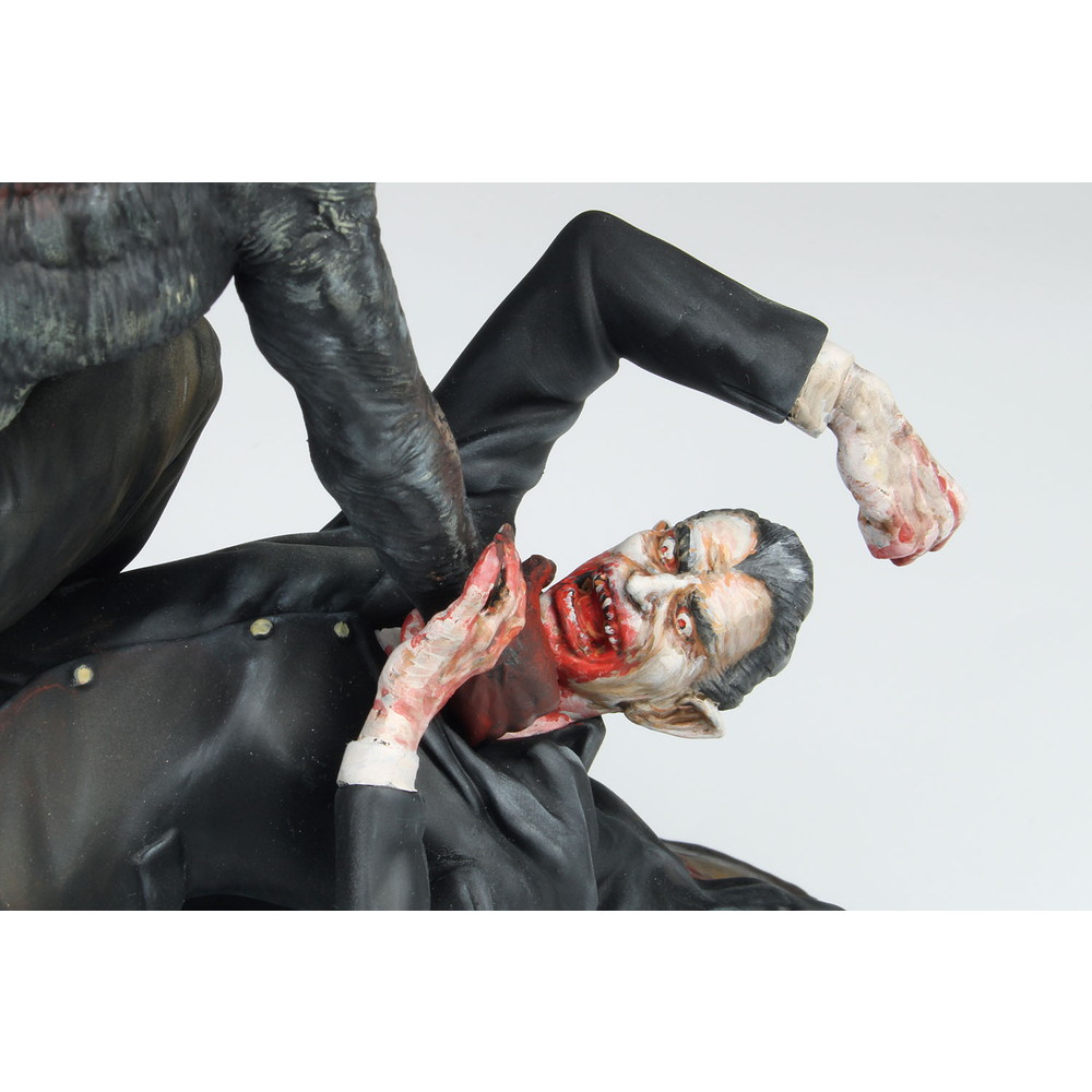 狼男の顔はもちろんドラキュラに襲いかかるポージングや体の各部の筋肉の表現など、迫力あふれる造形。そして、ドラキュラは首を掴む狼男を睨みつける鬼気迫る形相が見逃せません。