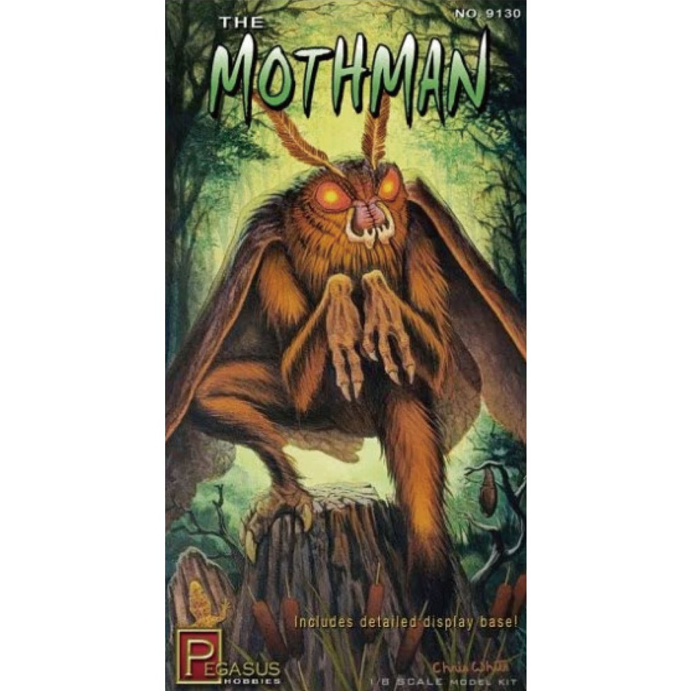 1/8スケールでアメリカのウェストバージニア州に生息すると言われる伝説の生き物、で謎の未確認動物(UMA)、モスマンを再現したプラスチックモデル組み立てキットです。
