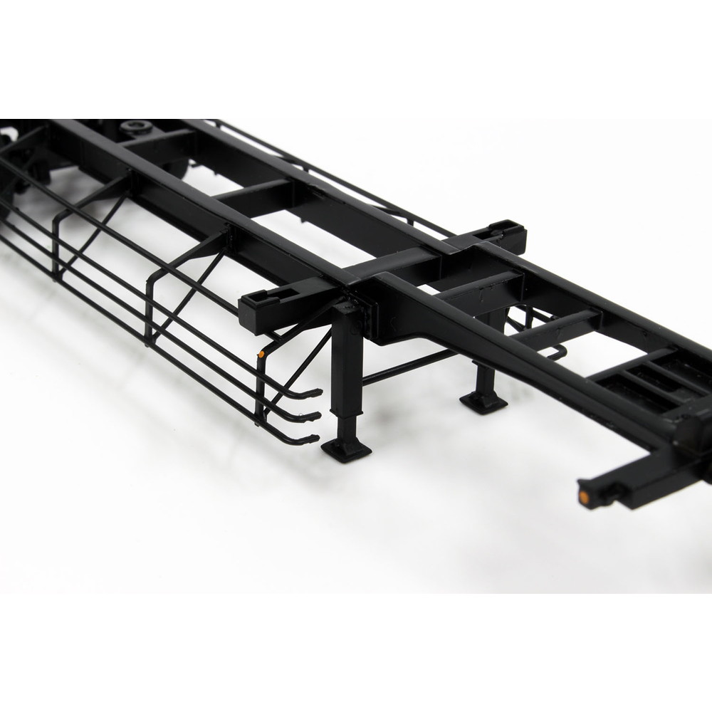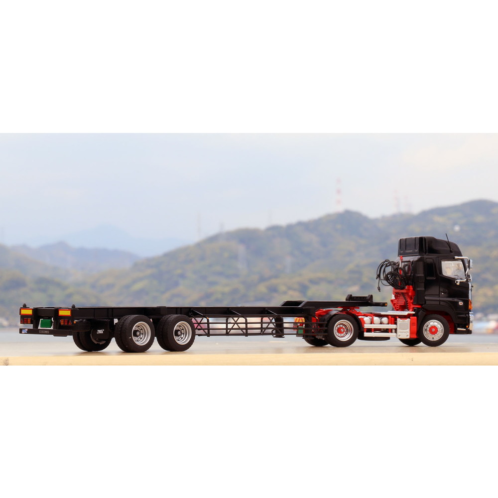 ●海上コンテナを陸上で輸送するための専用のトレーラ(黒色)を1/50スケールで再現