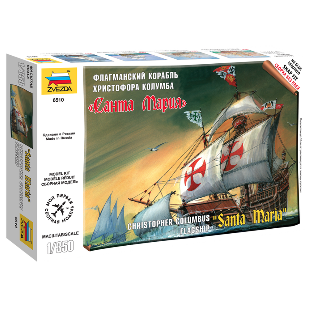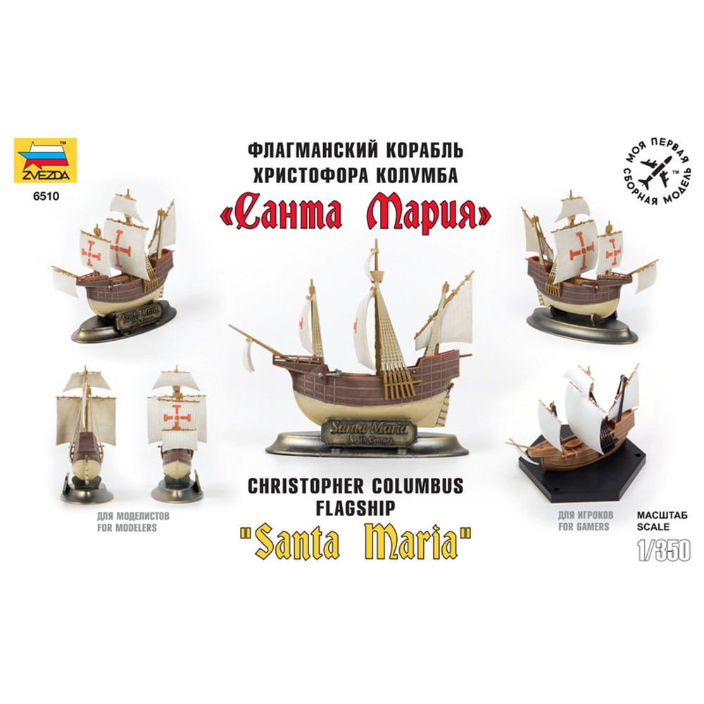 モデルは歴史に残るコロンブスの航海に船団を組んだ3隻の帆船の中で中心的な1隻、サンタ・マリア号を1/350スケールで再現したプラスチックモデル組み立てキットのセットです。