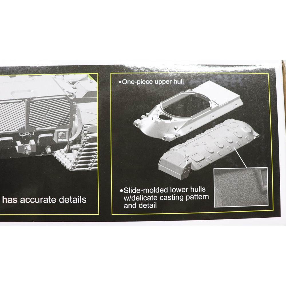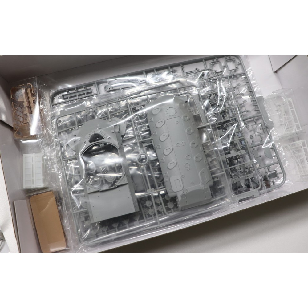 M48パットンならE派の車体下部はスライド金型を使って形状を再現するとともに鋳造の質感も表現します。加えて車体上部は一体パーツで形状を再現。