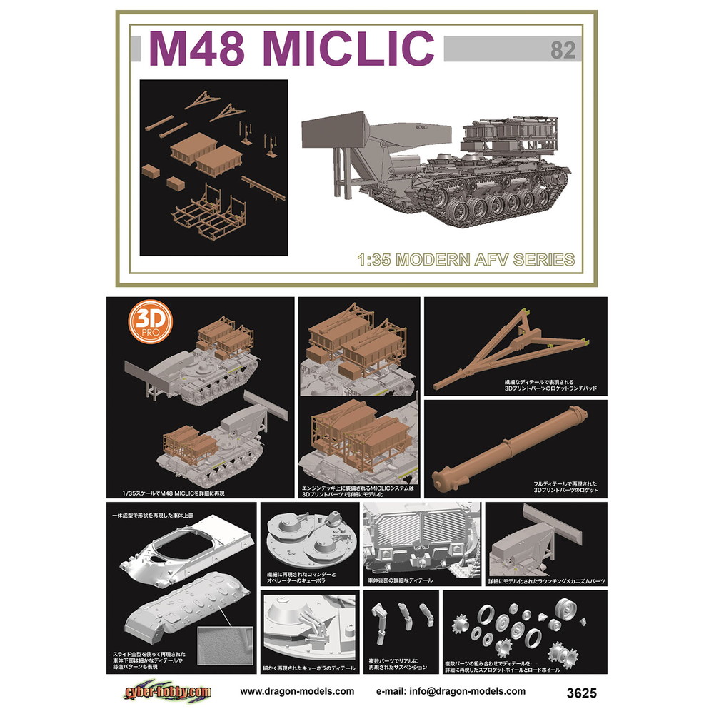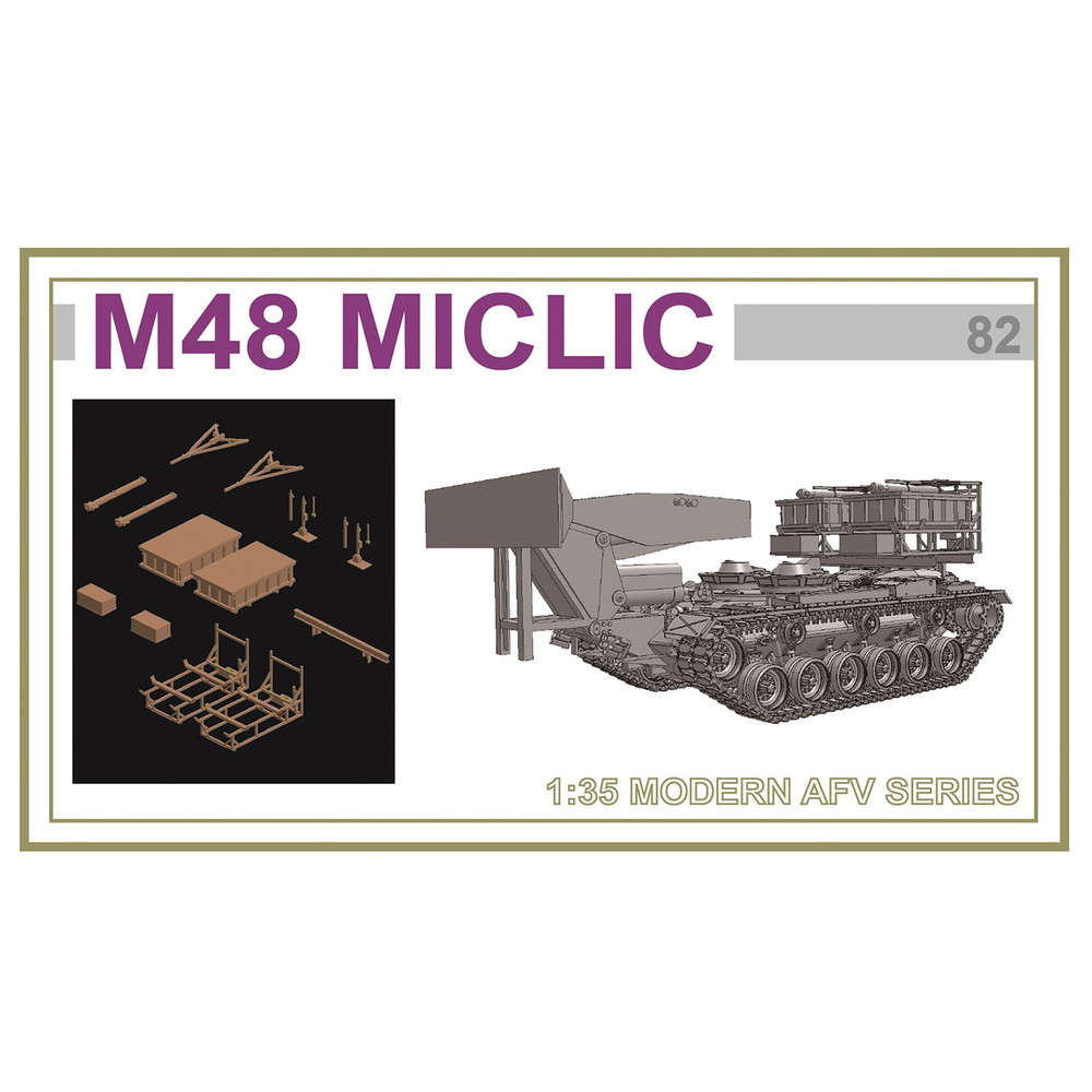 M48戦車の車体をベースにMICLIC(地雷除去導爆線)を搭載したM48 MICLICを再現したプラスチックモデル組み立てキットです。スケールは1/35。
