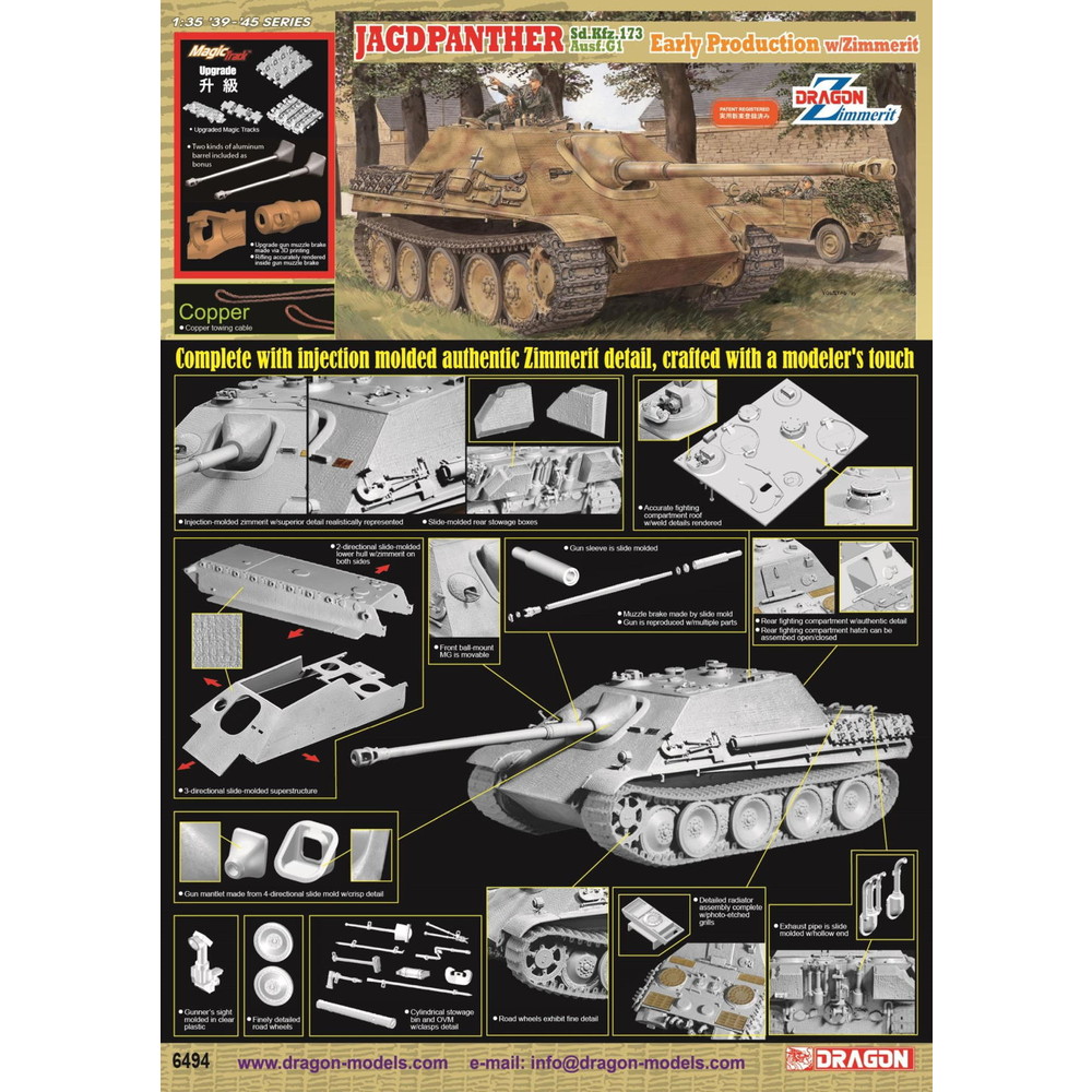モデルは第二次大戦のドイツ軍重駆逐戦車、ヤークトパンターのG1タイプを再現。1/35スケールで初期生産型をモデル化しています。
