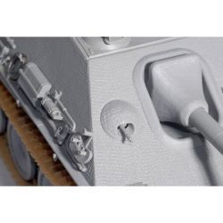 このキットでは車体パーツは戦闘室の前面、側面をはじめ、車体下部の前後面、側面にも施された磁気吸着地雷よけのツィンメリットコーティングを施した状態で再現。四角い模様の独特なパターンを詳細に表現しています。