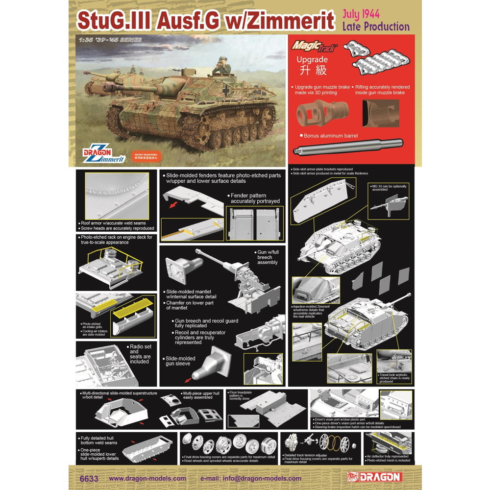 最大の生産数を記録したIII号突撃砲G型の中でも1944年7月頃に生産されたタイプを再現しています。
