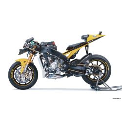 排気量800ccとなったエンジンは前年までのマシンと同じ4ストローク並列4気筒のレイアウトを継承。総削り出しのデルタボックスフレームに搭載します。