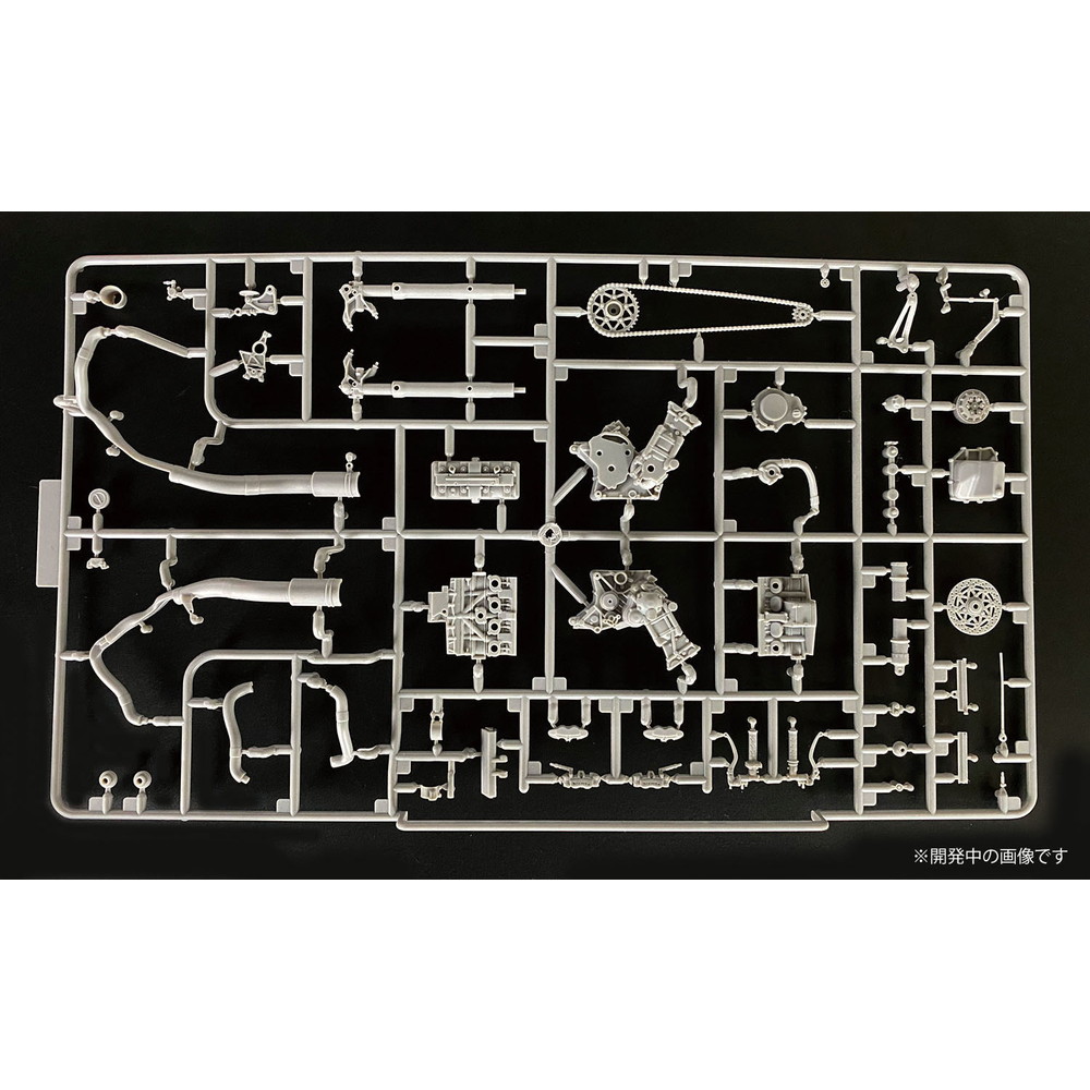 スケールは1/12、仕上がり全長は約172mm、全幅58mmでレーシングバイクのメカニズムを詳細に再現しています。